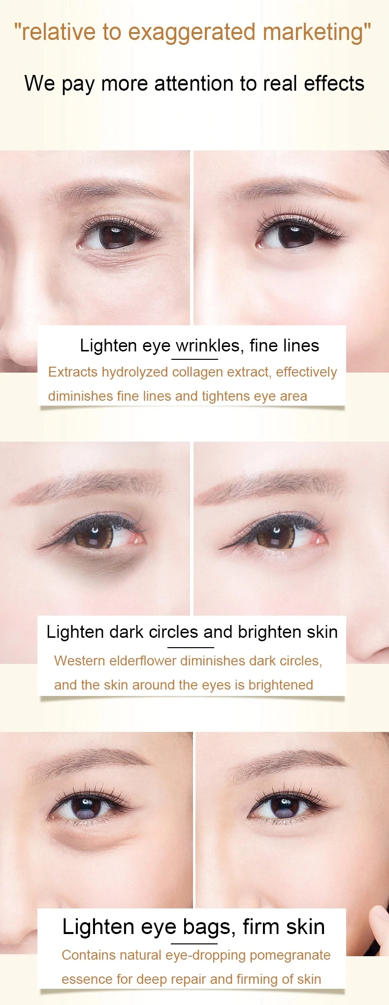 Увлажняющий крем для век против морщин крем разбавленной темные круги и осветляет кожу. Красота дневной и ночной крем 【Notice: данный товар прошел проверку по одобрен Управление по санитарному надзору за качеством пищевых продуктов и медикаментов США сертификации! 】 [Ключевые слова] Подтяжка и подтяжка, облегчение линий вокруг глаз, защита от отечности, против морщин, увлажнение Крем для глаз, сыворотка для глаз, эссенция для глаз, уход за кожей глаз, маска для глаз, корейский уход за кожей, корейская косметика [Origin] Китай (материк) [Основная] Корея Fonce Косметика обратную связь о том, что вы хотите о том, что вы хотите. [Основной ингредиент] Гранатовый экстракт семян, kassou ekisu. Isuzu Small гидролизованный коллагеный. (без тяжелых металлов компоненты) [Эффективность продукта] Гидролизованный коллаген богат питательными веществами и содержит белок 60-70%, который может эффективно уменьшить линии глаз и восстановление и повышение упругости кожи. Экстракт граната может эффективно затянуть кожу глаз и затянуть мешки для глаз Западный эльдерцветок может разбавить темные круги и осветить кожу. [Как использовать] 1 очистить вашу кожу лица 2 Применение в вашей ладони или макияжа хлопок используется, чтобы равномерно нанесите на кожу лица. 3 мягко коснитесь до тех пор, пока он не впитается Советы: рекомендуем использовать два раза в день (день и ночь). Непрерывного использования. Кожа должна улучшить. [Вес нетто] 20 г