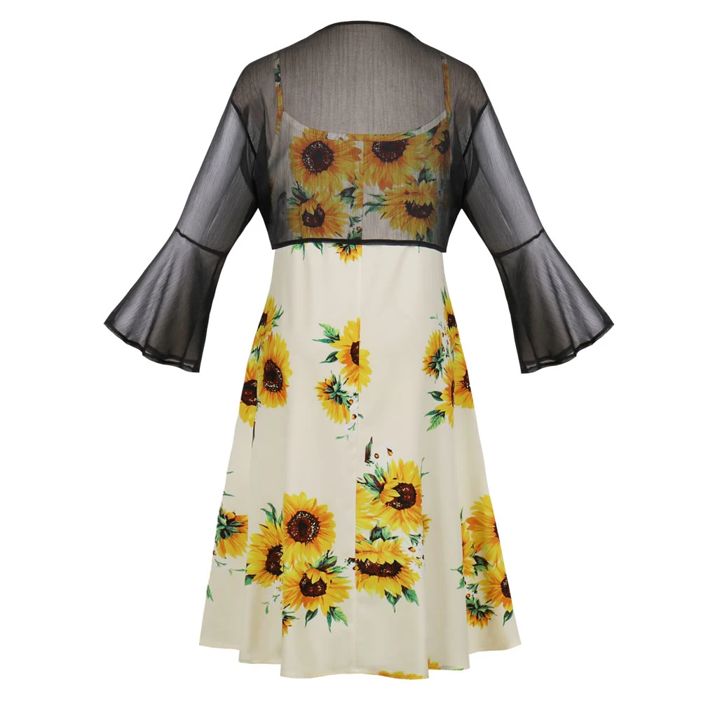 "* Винтажные подтяжки с принтом подсолнуха плюс Европейский королевский стиль придает вам элегантный стиль в стиле ретро; Облегающий и расклешенный силуэт льстит вашей фигуре
