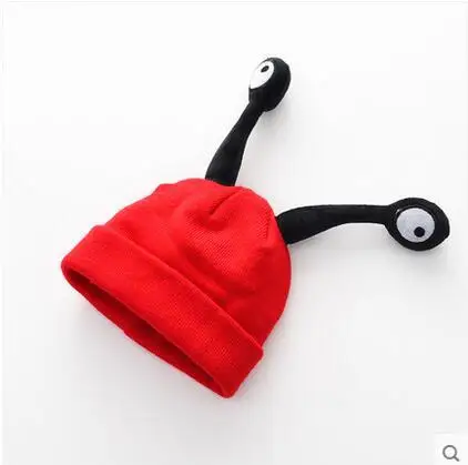 Милая детская шапка с глазами, вязаная крючком, для малышей, две антенны, реквизит для фотосъемки с героями мультфильмов, детская теплая Шапка-бини