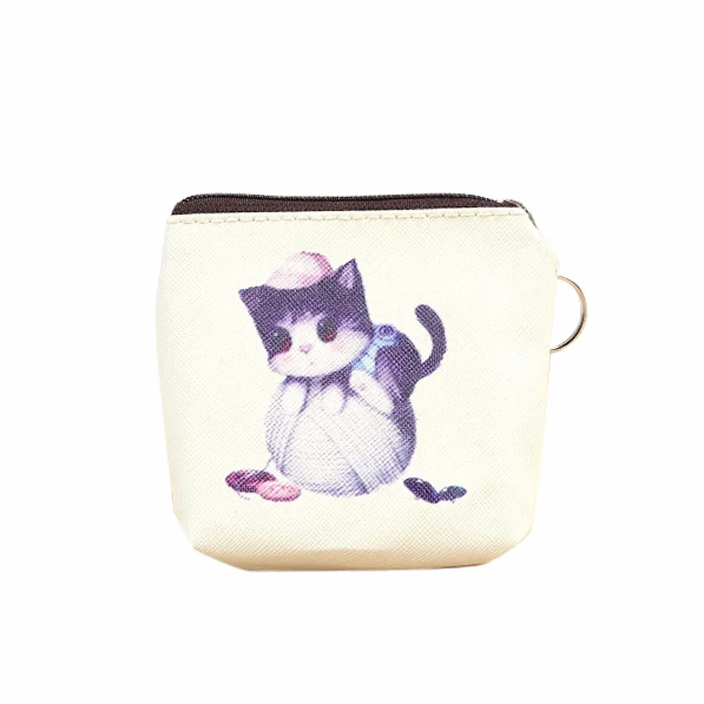 Милый Кот Для женщин кожаная куртка для девочек на молнии для монет кошелек сумочка для ключей, карточек дамских бумажников