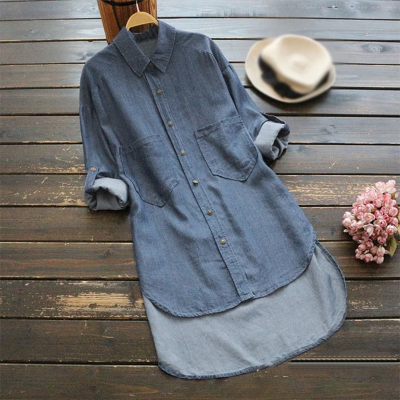 * Описание товара:Женские топы, повседневная Весенняя рубашка с длинным рукавом, большие размеры, асимметричный подол
