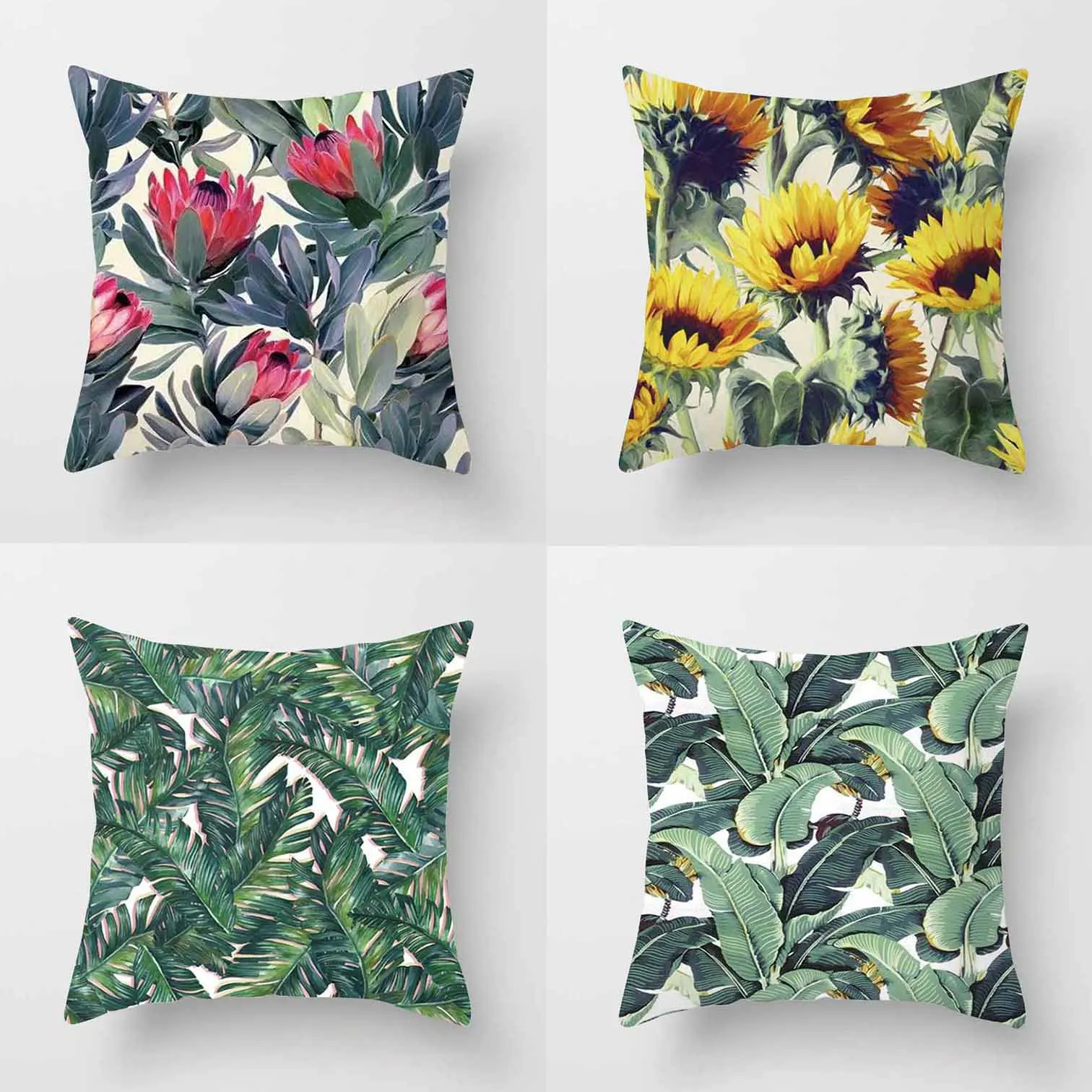 Наволочка на подушку с тропическими мотивами растение пальмовый лист зеленые листья Monstera наволочка цветок гибискуса линия Наволочка декоративная для дивана