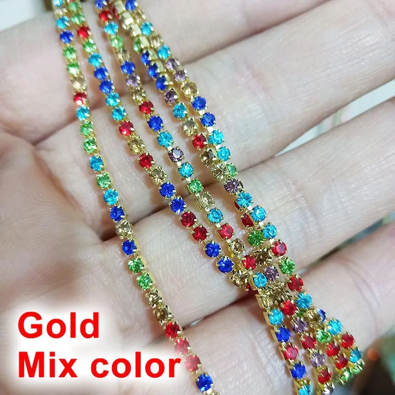 Подробная информация о продукте Название изделия: плотная цепочка с когтями/цепочка с когтями Материал: Стекло Цвет когтя: золотой Цвет: 17 цветов Упаковка: 3 ярда/партия Размеры: SS6 (2,0-2,1 мм) Примечание: 1 ярд = 0,914 метра, 3 ярда = 2,75 метра Показать