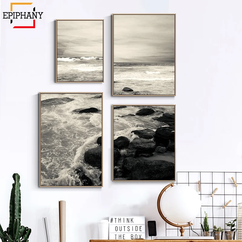 Современная Настенная живопись на холсте большой постер черно-белый пейзаж картины настенные картины для гостиной спальни