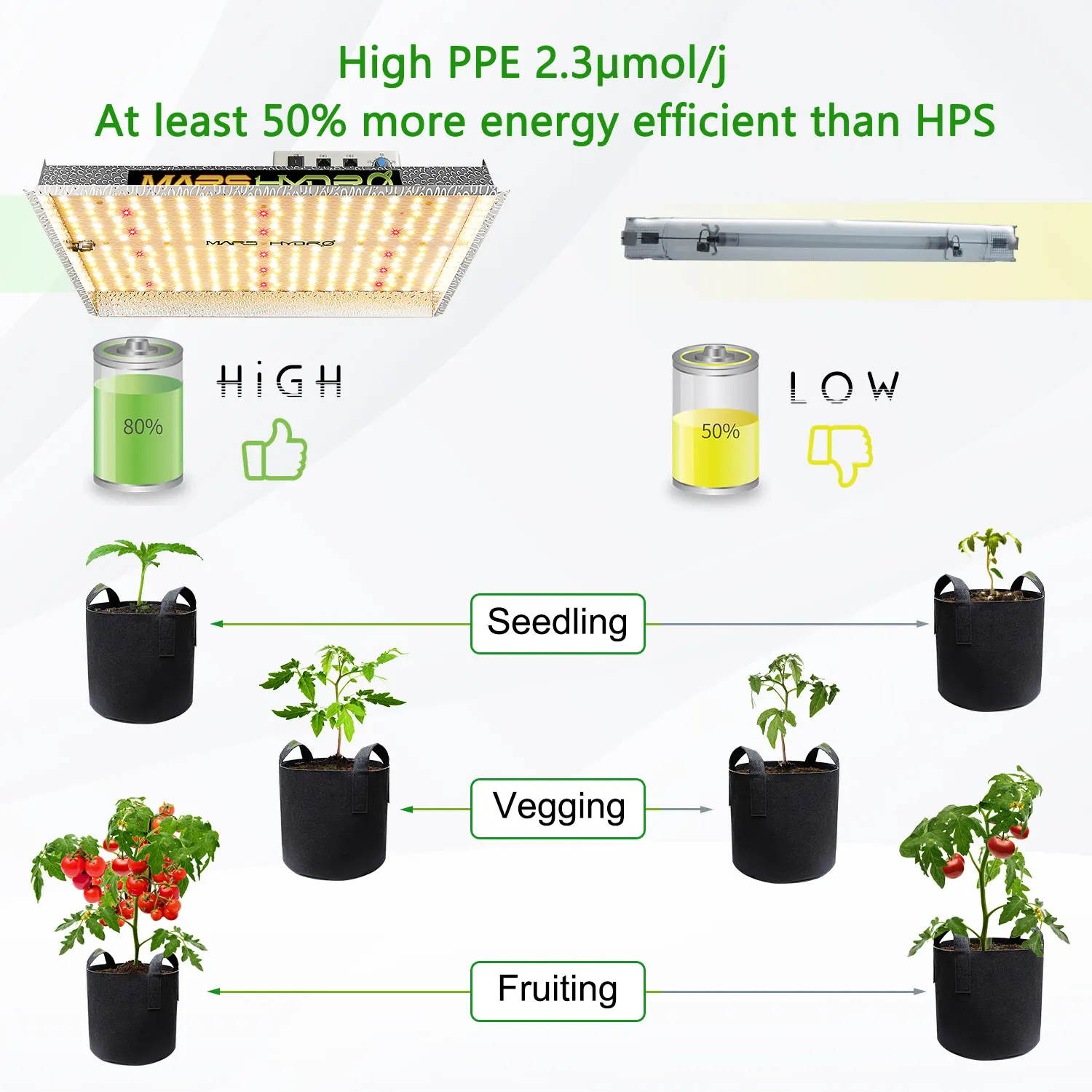 ➦ Наиболее эффективная и на 50% более высокая производительность ➦ Высокая урожайность и меньшее энергопотребление ➦ Минимальная жара и 50000 часов жизни ➦ CE/ETL Сертифицирован и гарантированно CE/ETL ➦ 2.0g/w и уборка бампера ➦ 3 года Беспроблемная гарантия