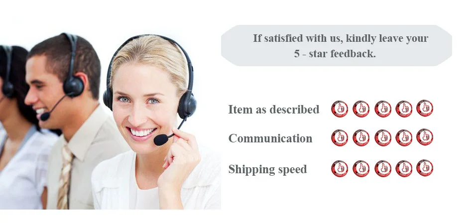 Ваши отзывы очень важны для нас. Если вы удовлетворены нашим продуктом и обслуживанием, пожалуйста, оставьте нам положительный Отзывы и обзор с пятью звездами. Если вы недовольны нашим обслуживанием или какой-либо другой проблемой, пожалуйста, свяжитесь с нами, прежде чем оставить отзывы, и мы немедленно решим проблему. Большое спасибо!