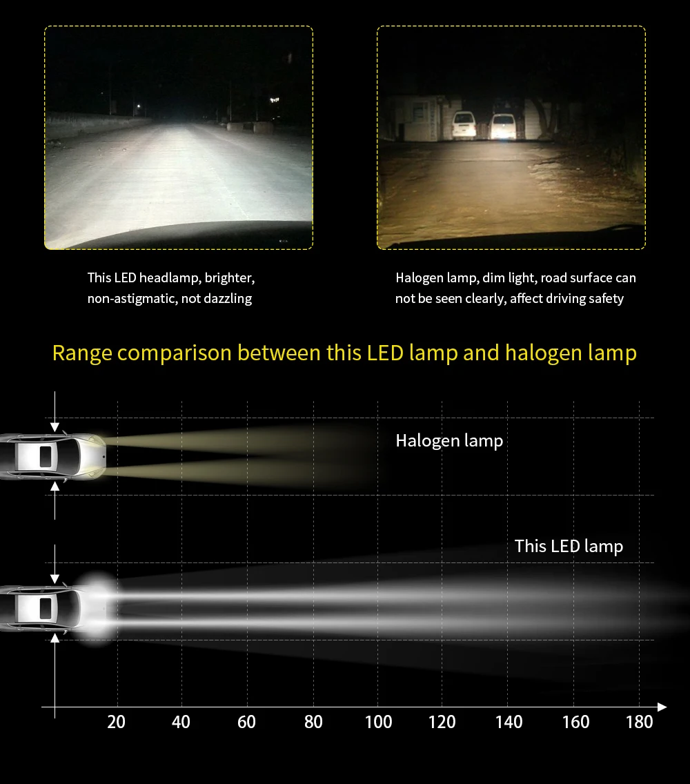 4. 6000K чистый белый цвет, лучшая видимость в ночное время