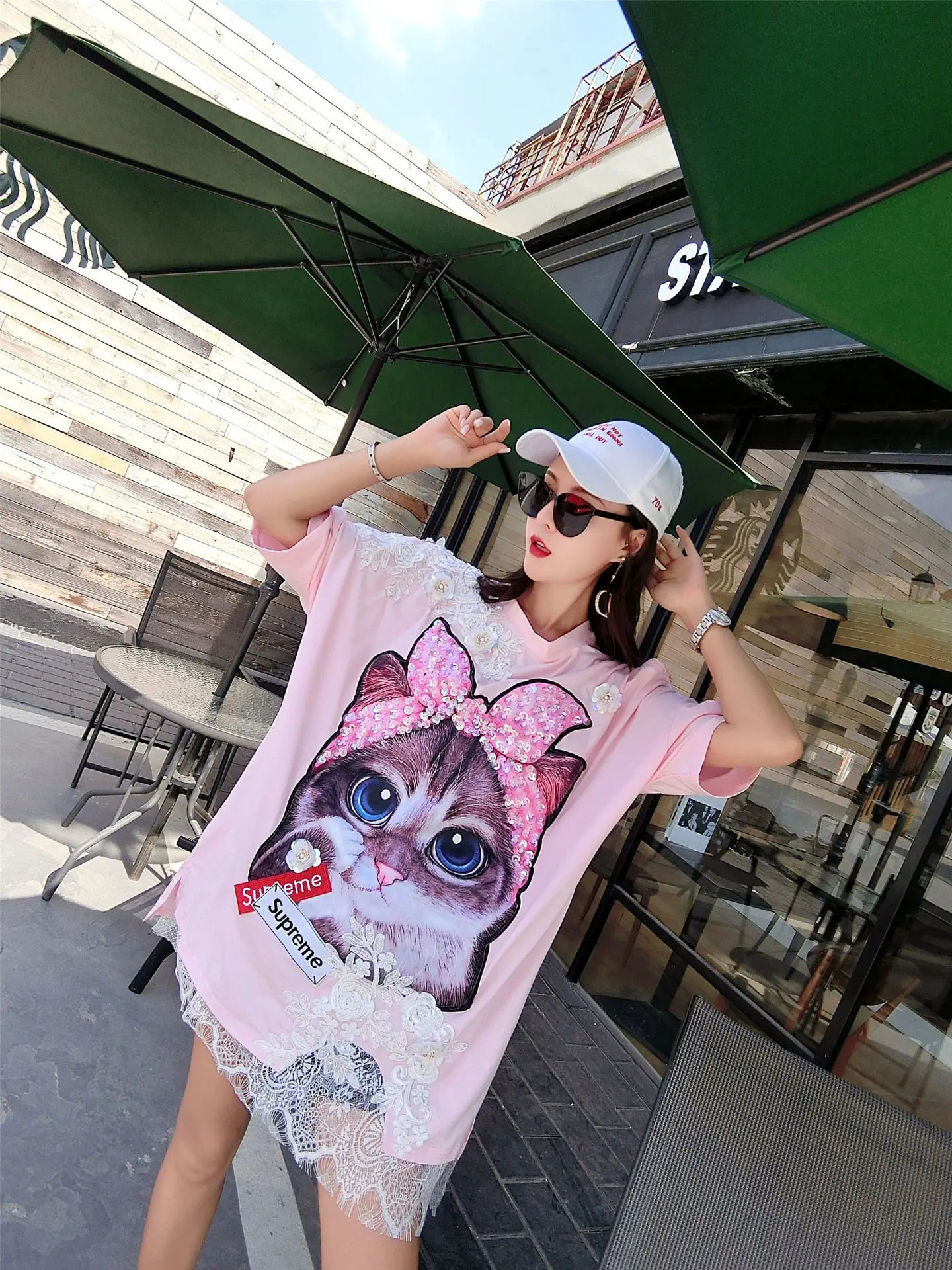 QING MO черное розовое белое платье с принтом кота утки женское кружевное лоскутное платье