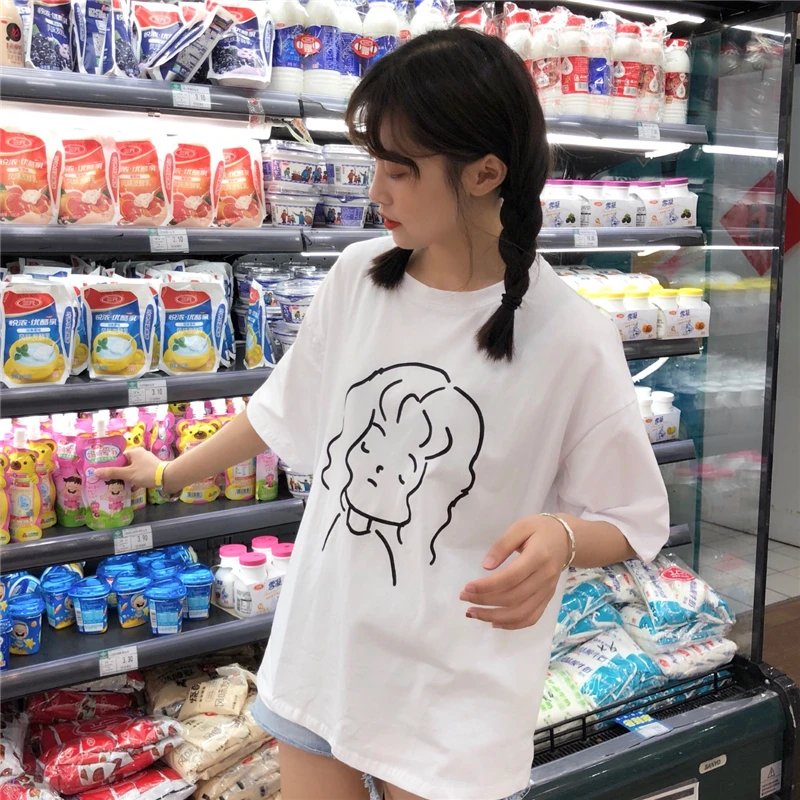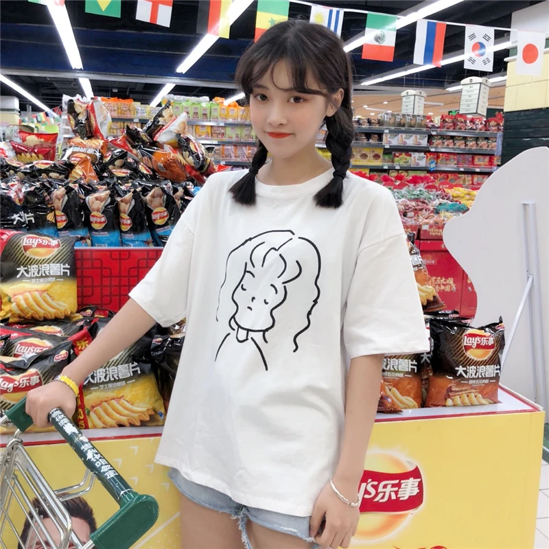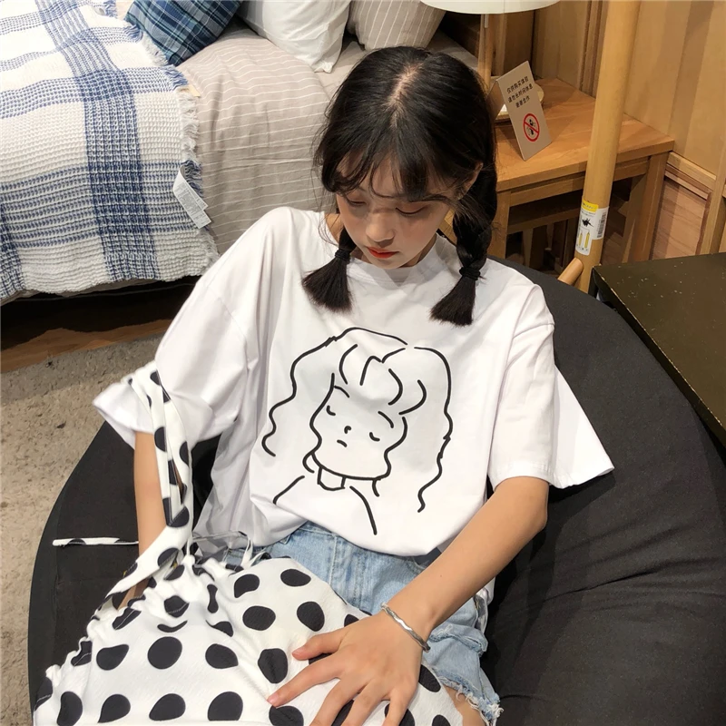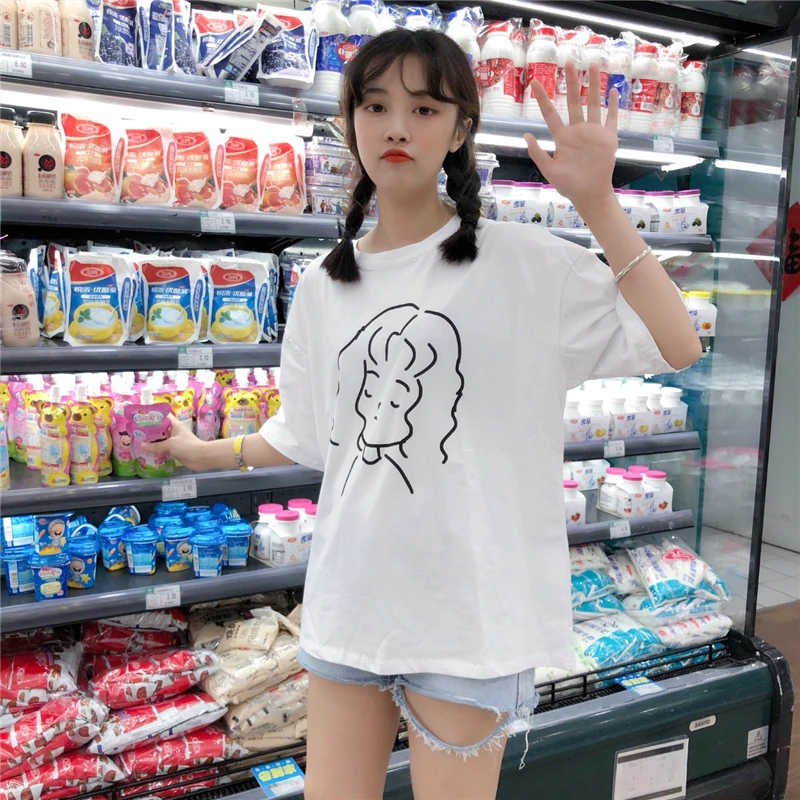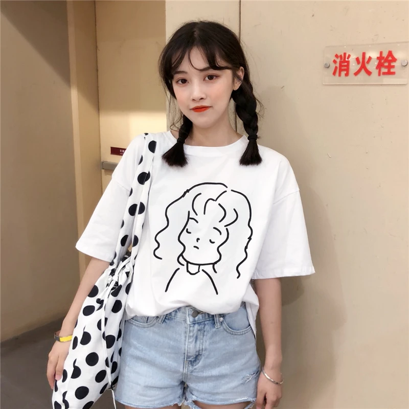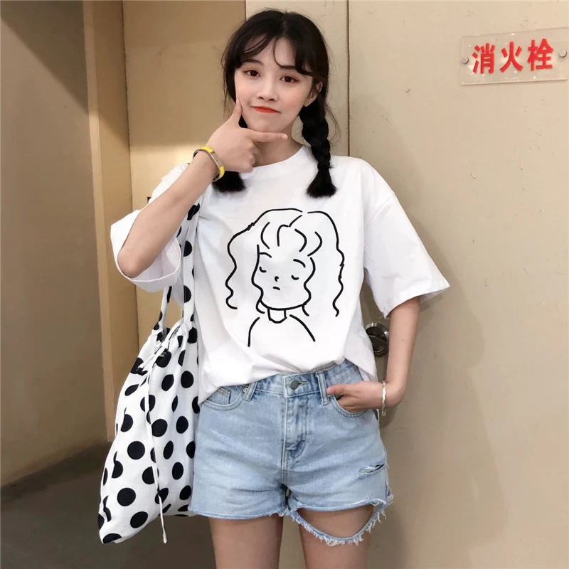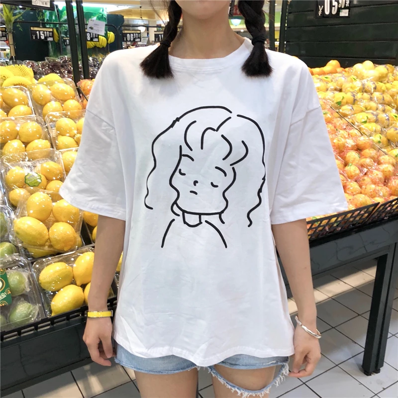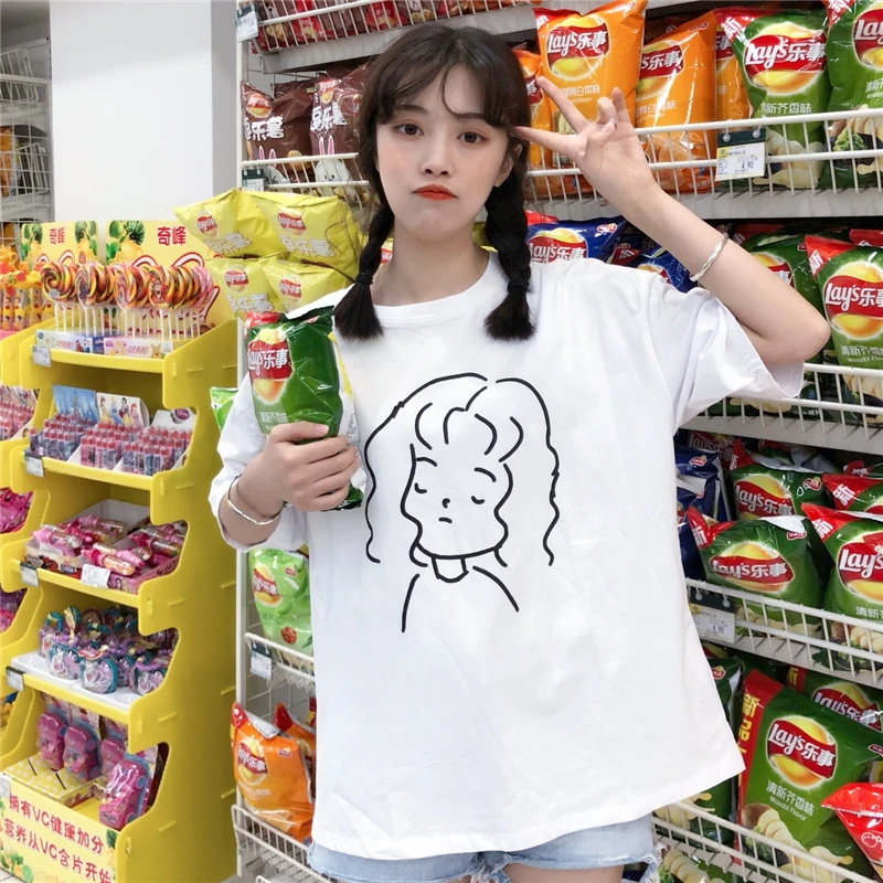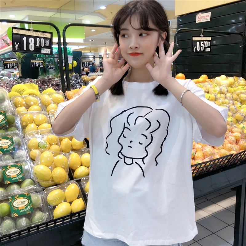 Летние женские свободные футболки с мультяшным принтом для девочек, женские футболки в Корейском стиле для студентов Ulzzang Wild Hip-hop Bf Harajuku, женские топы