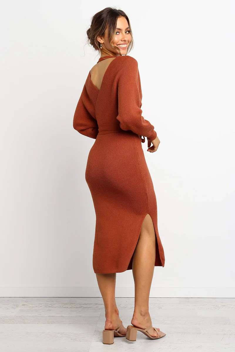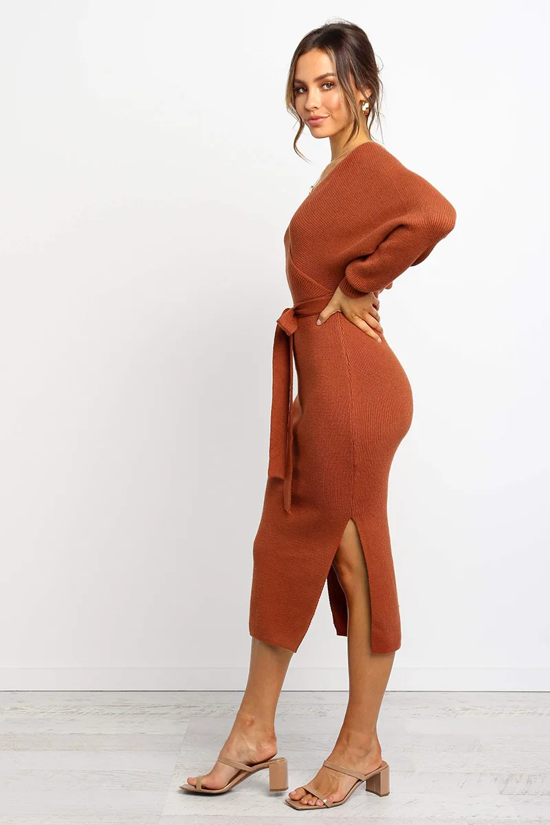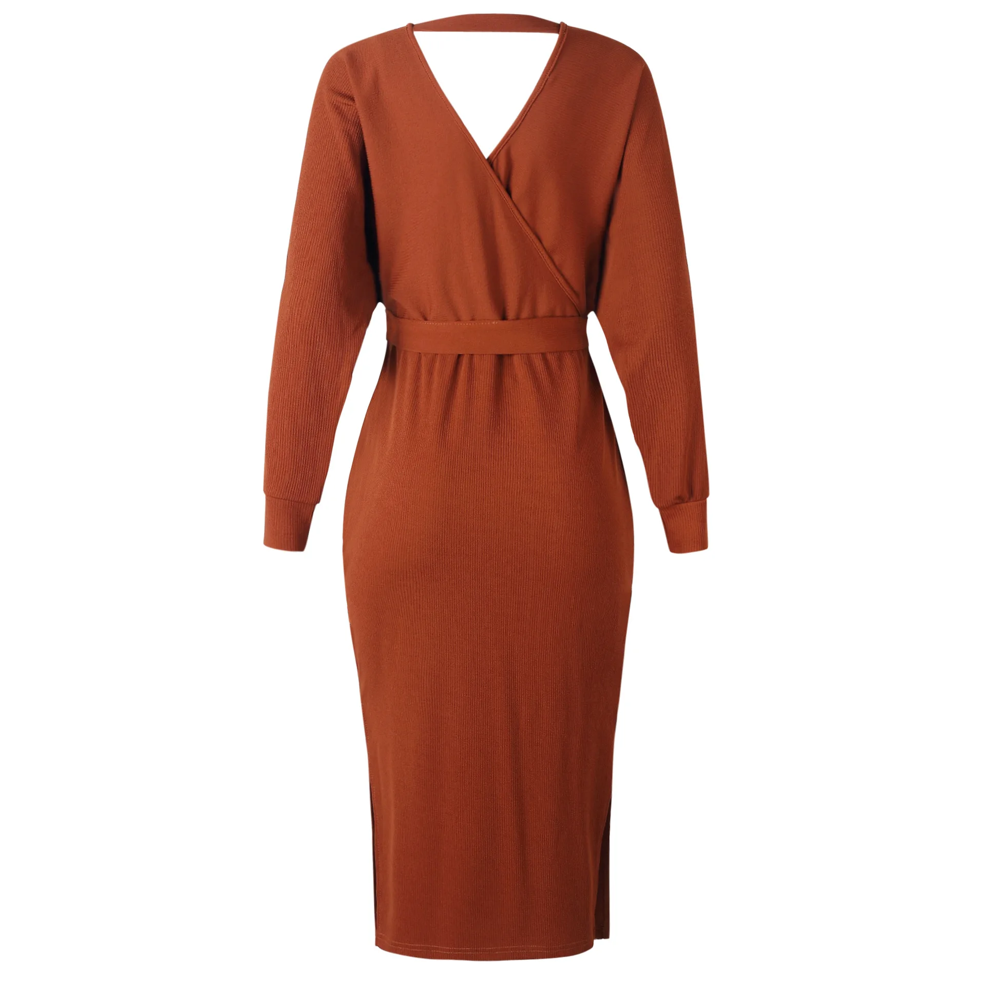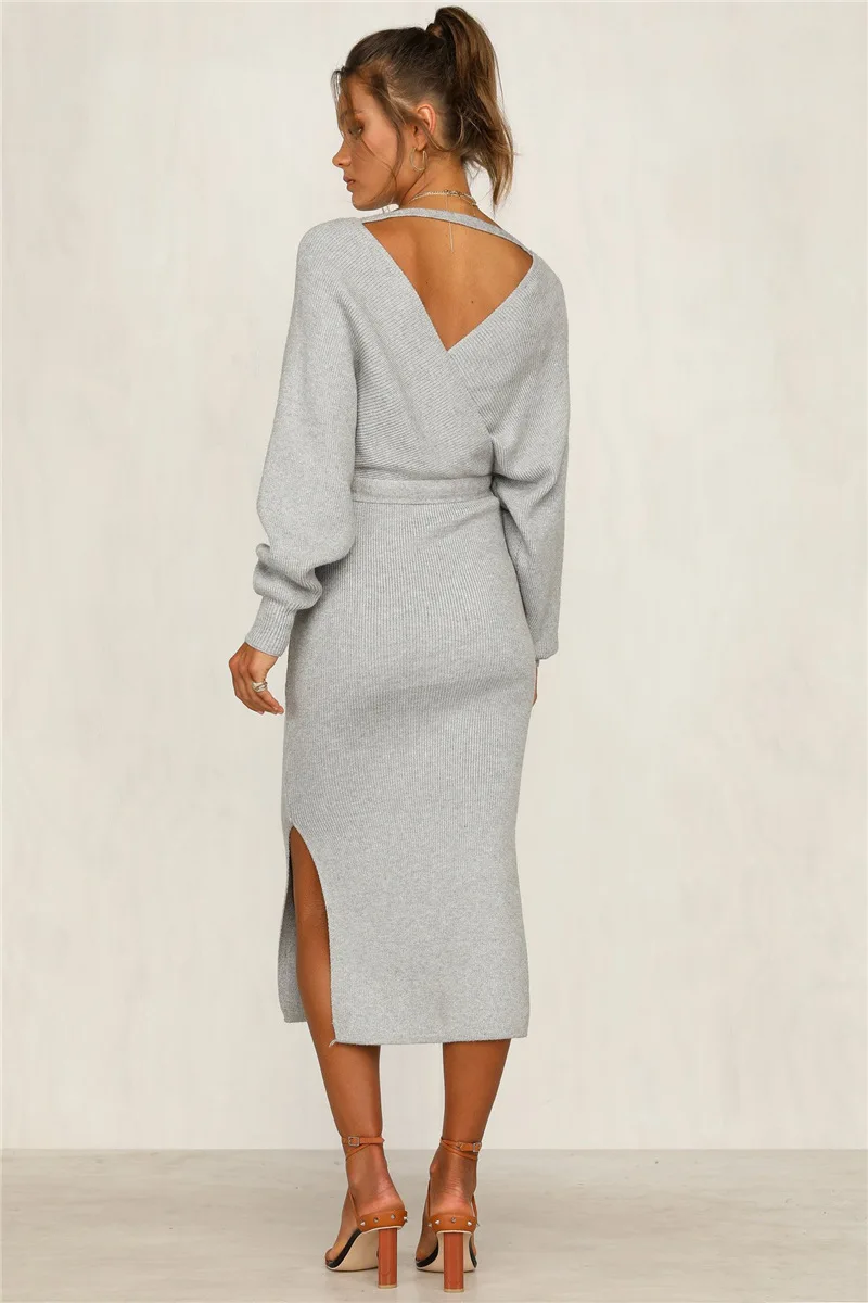 BUENOS 2019 autumn winter new women's sexy V-neck sweater dress female loose female long bat sleeves solid knitting midi dress