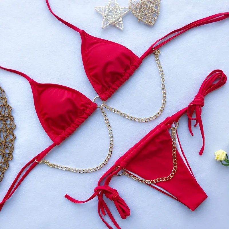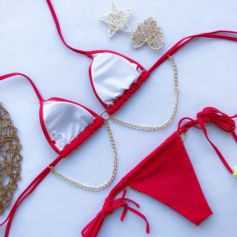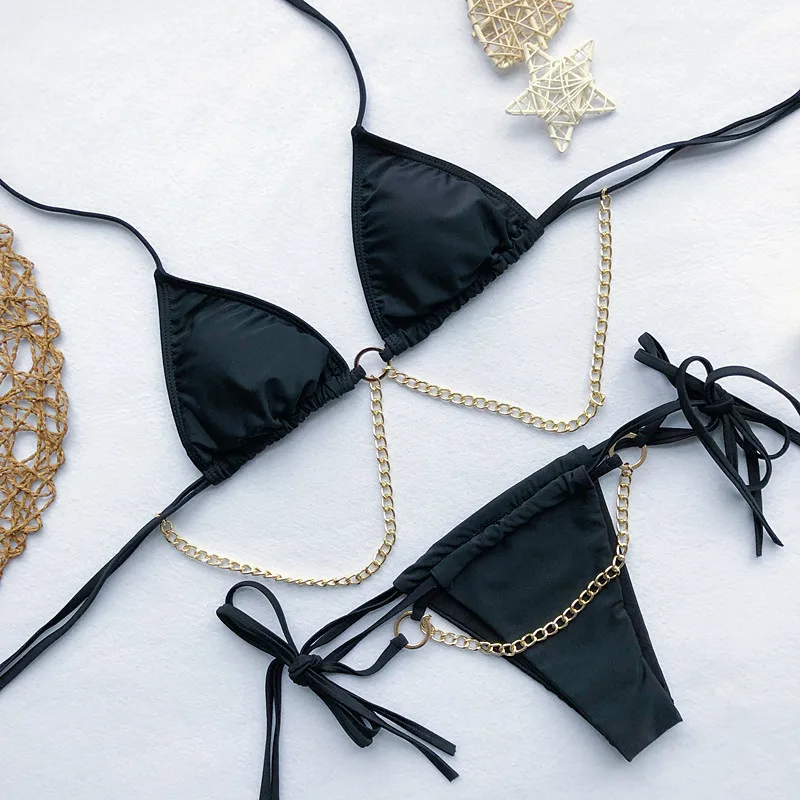 Женский купальник бикини однотонный из змеиной кожи с кружевом и пуш апом