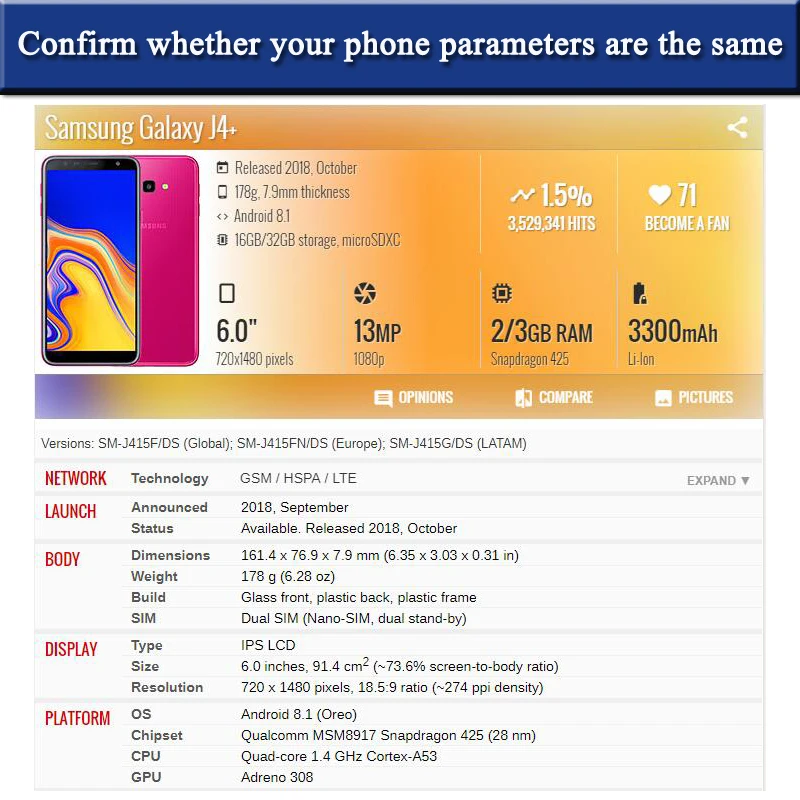 1. Совместимые модели: SM-J415F, SM-J415FN, SM-J415G, SM-J415GN