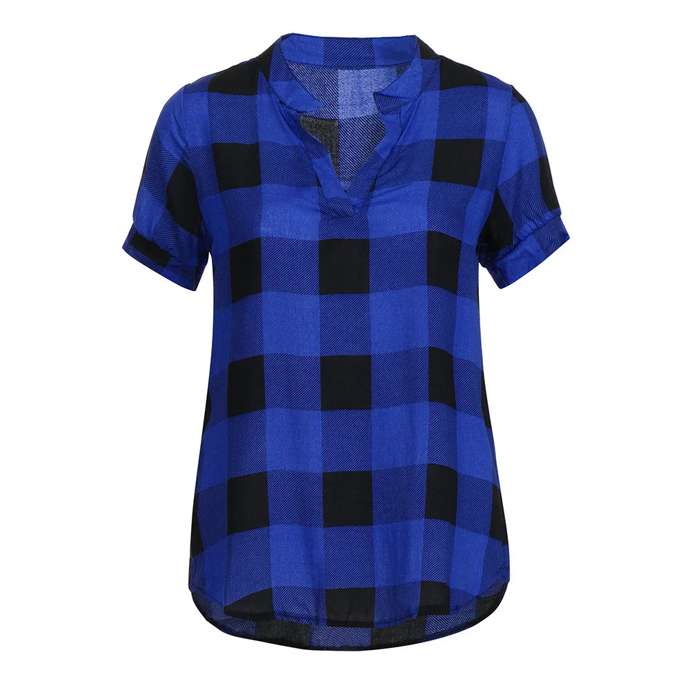 Женская Повседневная Блузка с коротким рукавом, асимметричным подолом и принтом в клетку