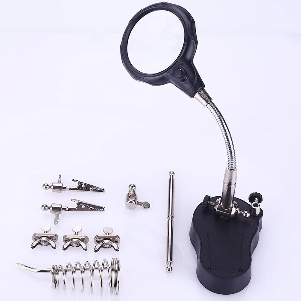 3.5x 12X тирид ручная Лупа пайка увеличительное стекло Аллигатор клип с подсветкой ювелирные изделия микроскоп настольная Лупа с светильник