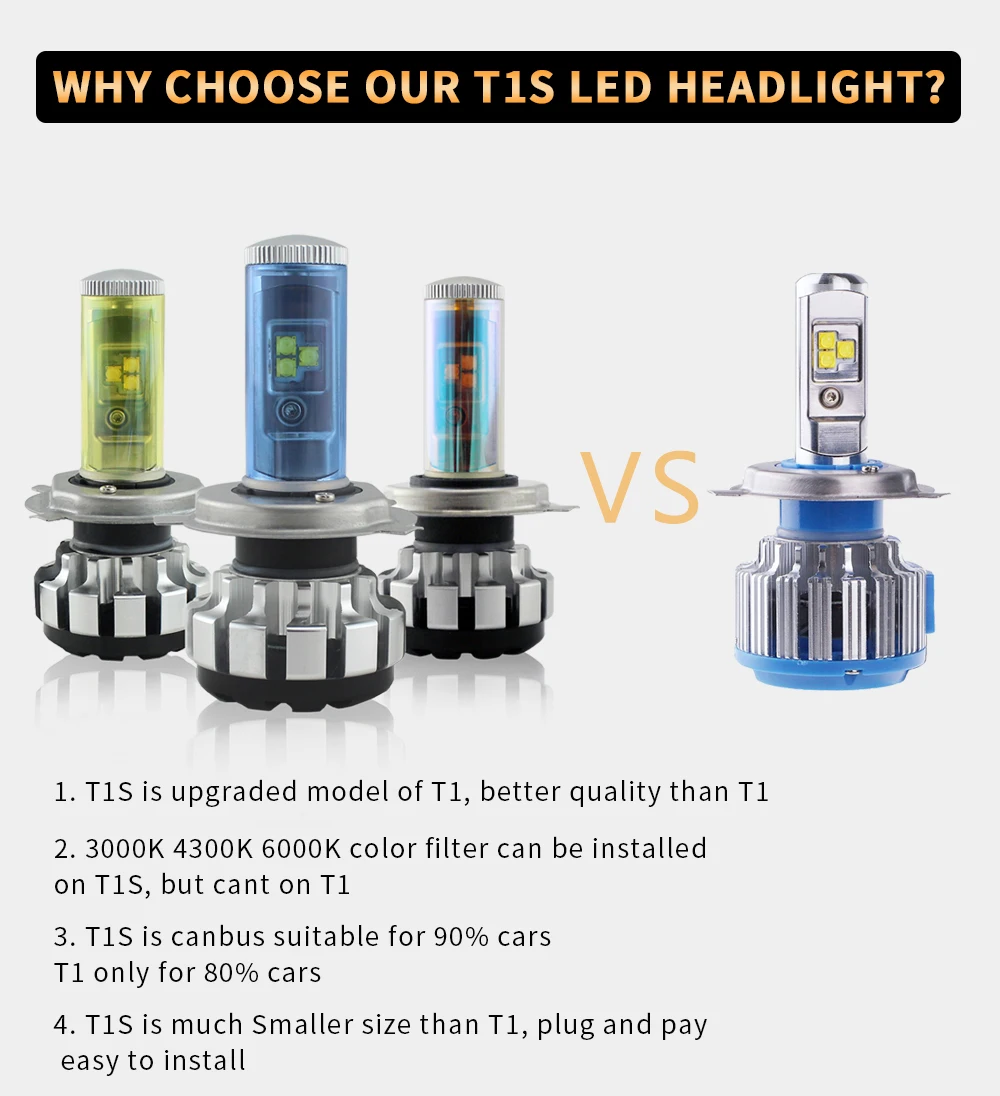 Турбо светодиодный Canbus T1S светодиодный автомобильный фонарь 6000 К белый H1 H3 H7 светодиодный H11 HB3 HB4 H4 9007 светодиодный противотуманный фонарь для автомобиля
