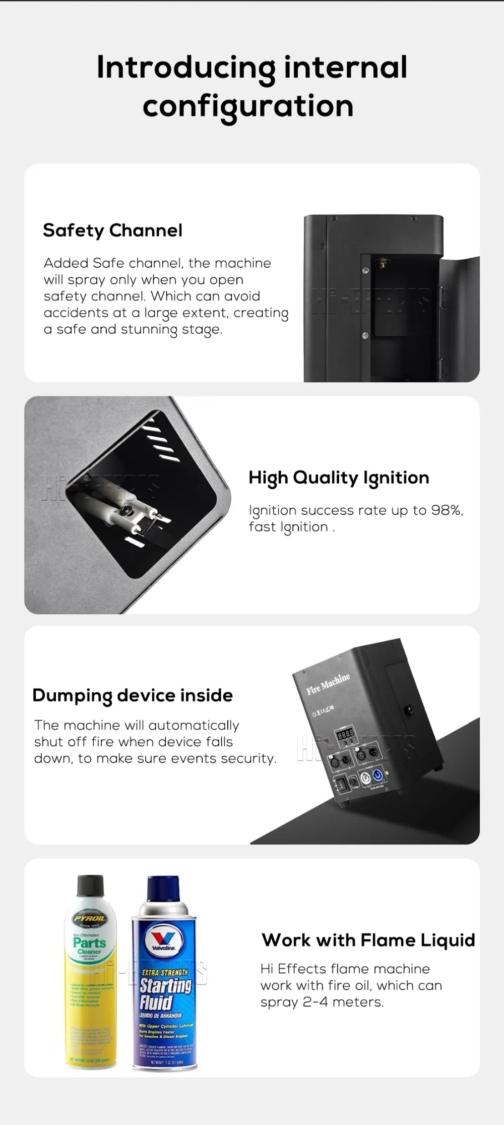 Power cableDMX Cablemanual bookwarm tip:The fire machine can work with the fire oil.However the fire oil is defined as flammable and explosive item,so we are forbidden to send it, you could get the fire oil in your own country.