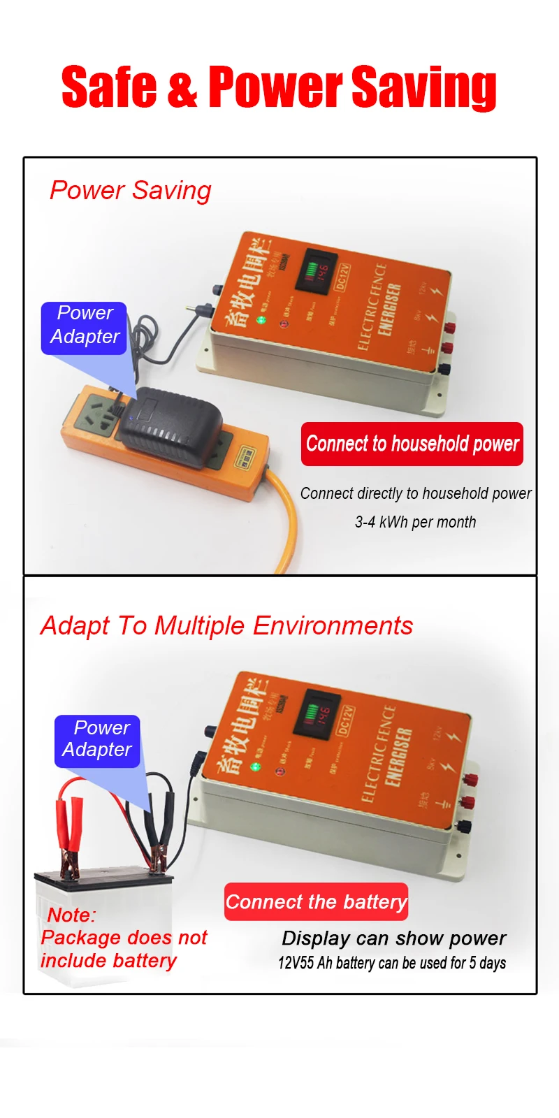 Электрический контроллер ограждения животных для собаки, коровы, овцы, лошади, оленя, медведя, свиньи, козы, крупного рогатого скота, курицыВысокая мощность, низкая стоимость электропитания забор энергичный используется, чтобы сломать вредные привычки Pets и держит нежелательных хищников из вашей собственности.Принцип использования заборов ранчо:1. Электронный хост забора + деревянные кольи + изоляторы + проводящий металлический провод. Когда животное приближается, высоковольтный Пульс даст животному сильный высоковольтный Электрический шок.2. Несмотря на то, что длительность импульса коротка (0,2 секунд), высокое напряжение 12KV достаточно придать строгое предупреждение о том, что не следует животных при контакте с ним. Животные получают это строгое предупреждение и образуют условное отражение в будущем и не будут касаться заряженных проводов забора3. Животные в ручке будут перемещаться в зоне, окруженной заряженным металлическим проводом, чтобы достичь цели плена. Такая функция помогает все больше и больше фермерам управлять своими ранчо легко и быстро. Это значительно снижает стоимость строительства забора, уменьшает потери, вызванные бегством животных, а также может остановить внешние опасности для животных в этом районе.Ниже приведены серии электрических заборов:3 км Обычный Электрический забор (XSD-270B)Вход напряжение: 12 В постоянного тока, или 110V-240V AC солнечная энергия, опциональноВыходное напряжение: 12 кВИмпульсный период: 1,2 SВодонепроницаемость и защита от пылиРабочая длина: 3 кмOEM Выходная энергия от 0,3-2 JouleПотребляемая мощность: 0,5 Вт3 км сигнализация Электрический забор (XSD-270A)Входное напряжение: DC12V или AC220V (с помощью преобразователя питания)Выходное напряжение: импульсный 10 кВМощность: 2 ВтПериод импульса: 1 sДлительность импульса: менее 0,1 sВыход: 2,5 ДжЭффективное расстояние забора: 3 км5 км дисплей Электрический забор (XSD-280A)Входное напряжение: 12 В постоянного тока или 220 В переменного тока, источник питания (с преобразователем питания)Входной ток: 1A(12 В), 0.1A (220 В)Выходное напряжение: 8 кв. 12 кВВыходная энергия: 3 ДжоуляЭффективное расстояние забора: 5 кмПотребляемая мощность: 3 Вт (1 кВт · ч в течение 7 дней)5 км Обычный/сигнализация и дисплей Электрический забор (XSD-280A)Вход напряжение: 12 В постоянного тока, или 110V-240V AC солнечная энергия, опциональноВыходное напряжение: 8 кВ/12 кВИмпульсный период: 0,8 s-1,3 sВодонепроницаемость и защита от пылиРабочая длина: 5 кмOEM Выходная энергия: 2,5 JПотребление: 3 Вт10 км дисплей/сигнализация и дисплей Электрический забор (XSD-280B)Вход напряжение: 12 В постоянного тока, или 110V-240V AC солнечная энергия, опциональноВыходное напряжение: 8 кВ/12 кВИмпульсный период: 0,8 s-1,3 sВодонепроницаемость и защита от пылиРабочая длина: 10 кмOEM Выходная энергия: 4,5 JПотребление: 6 Вт20 км дисплей/сигнализация и дисплей Электрический забор (XSD-280D)Вход напряжение: 12 В постоянного тока, или 110V-240V AC солнечная энергия, опциональноВыходное напряжение: 8 кВ/12 кВИмпульсный период: 0,8 s-1,3 sВодонепроницаемость и защита от пылиРабочая длина: 20 кмOEM Выходная энергия: 6,5 JПотребляемая мощность: 9,5 WЭлектрический забор для кур (FD-2 обычный)(FD-3 сигнализация)Входное напряжение: 12 ВВыходное импульсное напряжение: 1.2 кВ/2 кВЭнергия хранения: 2 ДжоуляПотребляемая мощность: 2 ВтНиже приведены аксессуары для электрического забора:(1) 50 * кольцевой изолято