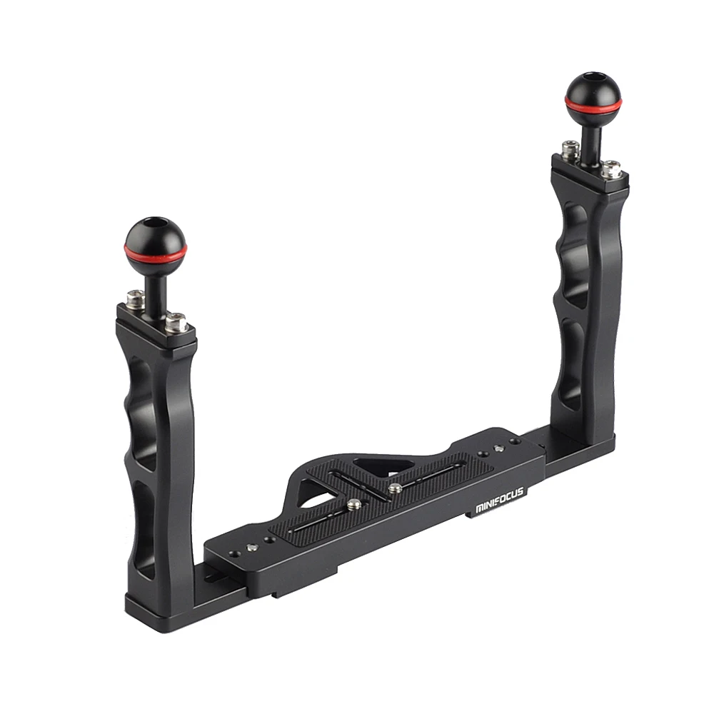 С 1/4 дюймовым винтом на лотке для камеры, предназначен для водонепроницаемой камеры/корпуса телефона. С одним шариковым адаптером на каждой верхней части ручки для установки различных видео/Стробоскоп светильник. Подходит для подводной съемки, делает вашу съемку более стабильной и профессиональной. Лоток для камеры можно регулировать, чтобы соответствовать размеру камеры, очень удобно и практично. Изготовлен из высококачественного алюминиевого сплава, с нескользящим ковриком, чтобы избежать случайного скольжения, очень прочный и стабильный в использовании, позволяет делать лучшие фотографии под водой. Простота в эксплуатации, с мини шестигранным ключом и винтами, просто нужно установить винт на отверстие от основания лотка с помощью гаечного ключа, удобно устанавливать и снимать.
