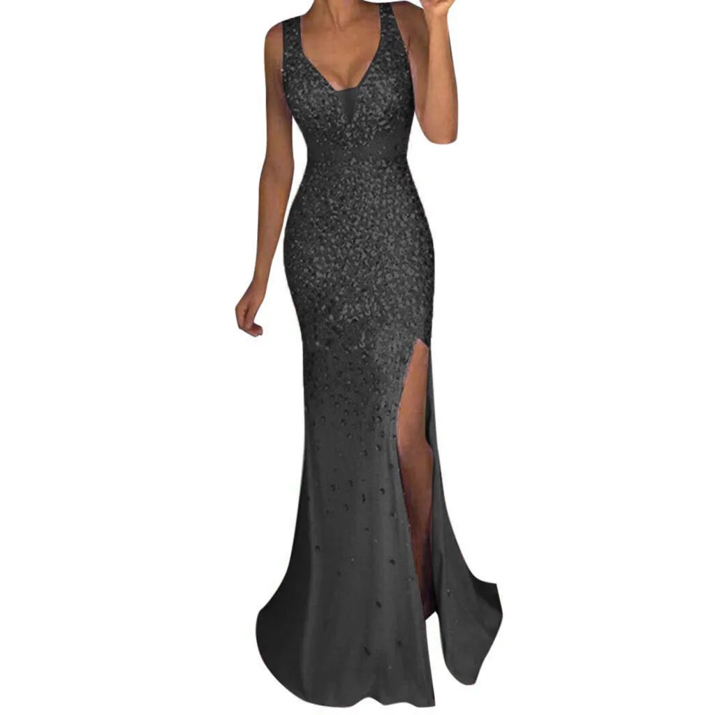 Женские вечерние платья с блестками для выпускного вечера, сексуальное Золотое вечернее длинное платье подружки невесты с v-образным вырезом