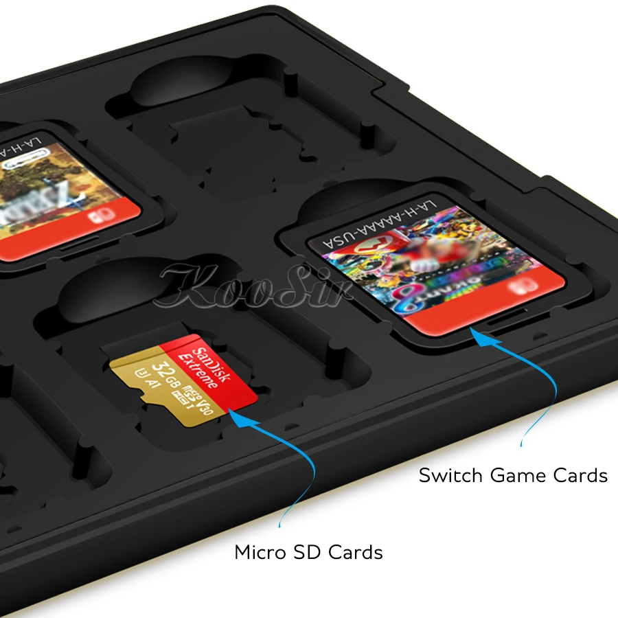 8. Храните до 12 игровых карт и 12 карт micro SD.