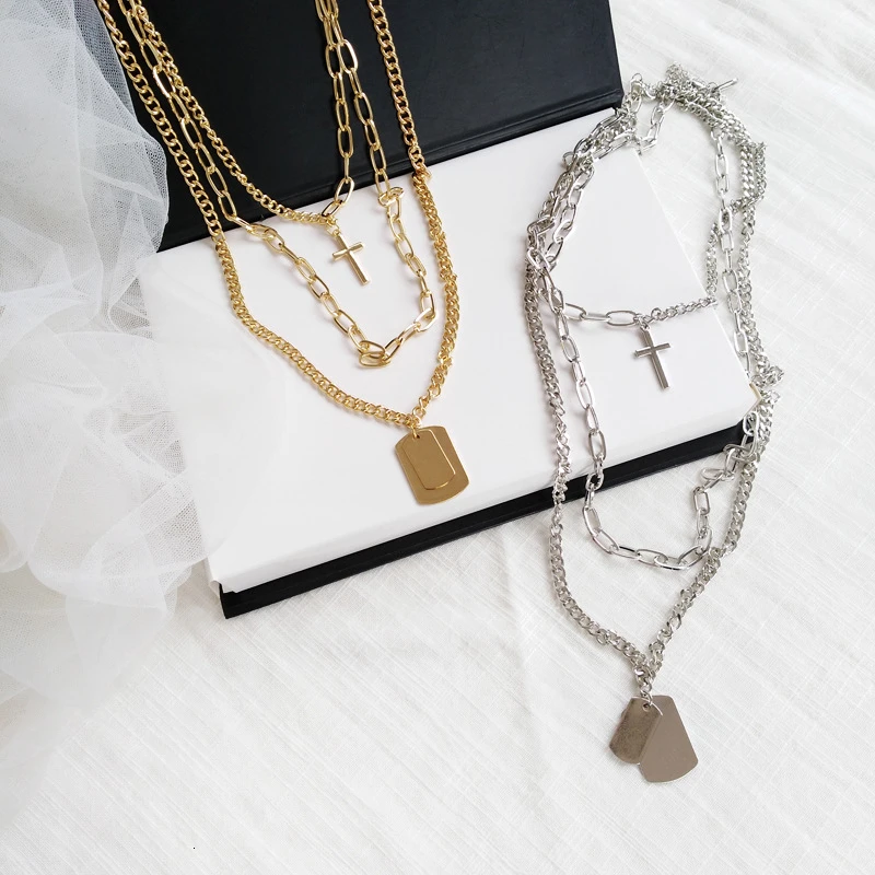 Модные ювелирные изделия в стиле хип-хоп, длинное многослойное ожерелье с крестом, Женская цепочка из нержавеющей стали, подарок на праздник
