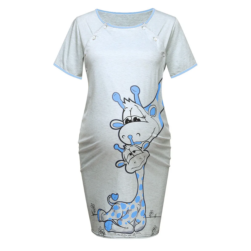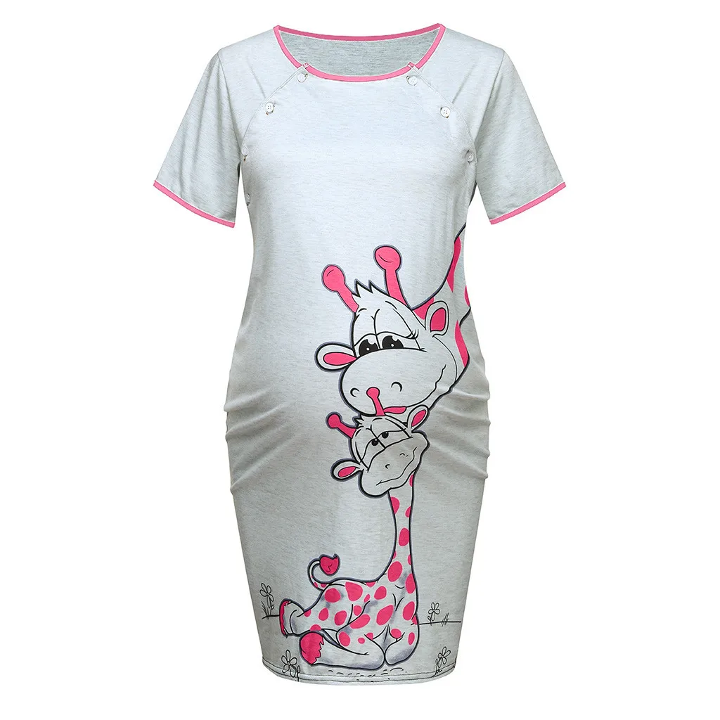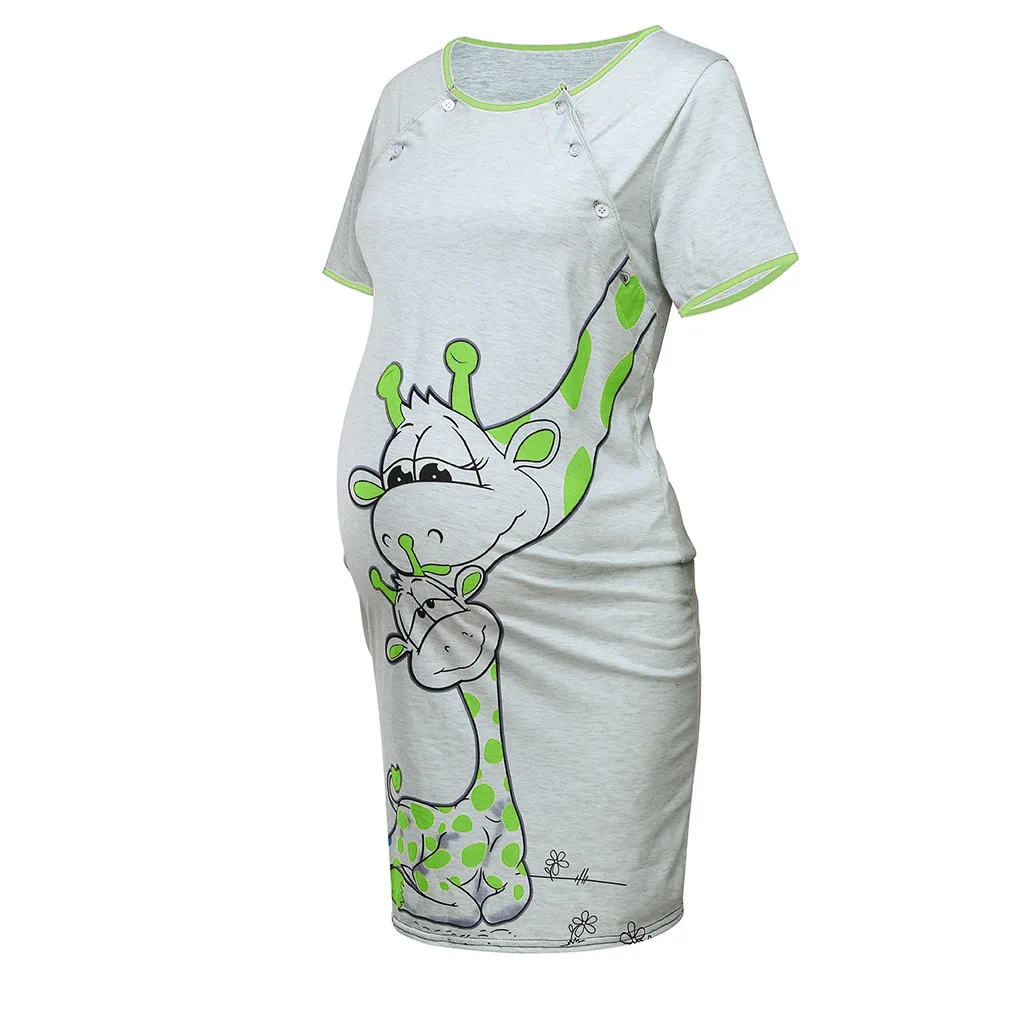 Женское платье для беременных с коротким рукавом, Однотонная юбка с принтом, ночная рубашка
