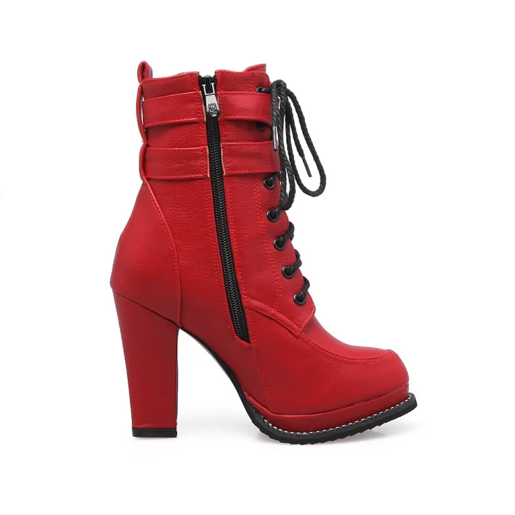Женские ботинки на шнуровке с круглым носком плоской подошве | Обувь