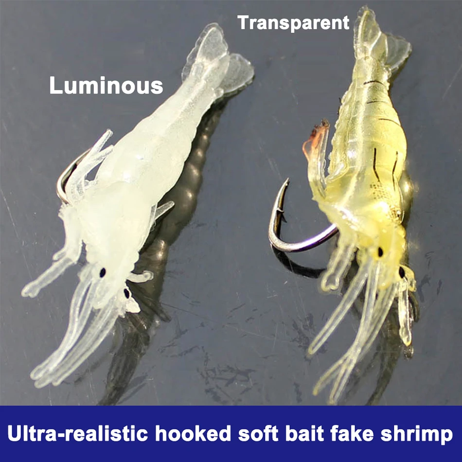 10 шт., Искусственные Креветки, рыболовная приманка с крючком, 1,3 г, 5 см, мягкий силиконовый джиг, светящаяся Рыбная приманка, имитация, кренкбейт, рыболовный крючок