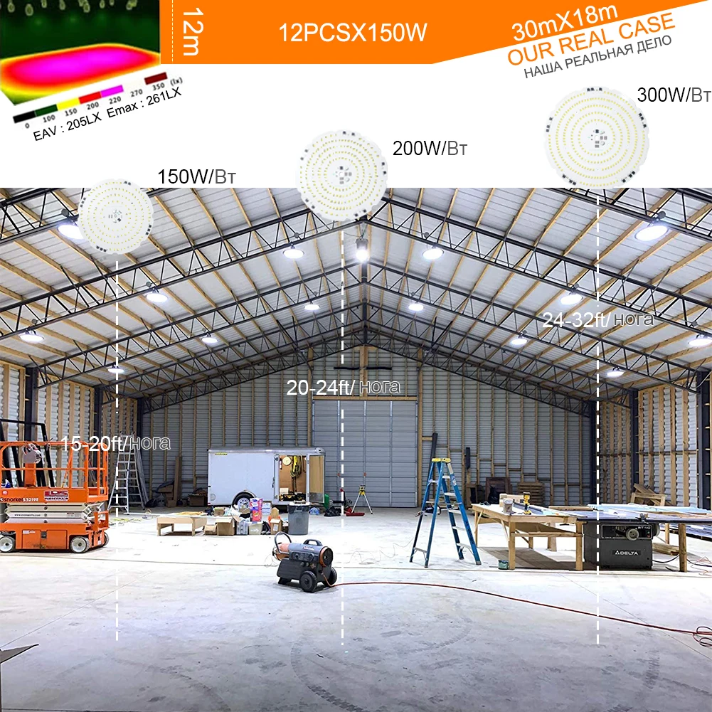 150W -17600LM 140 светодиодов, 1 вт SMD Сша CREE или германия Osram чип Рекомендуется: высота 15-20 футов, диаметр 36 футов 200W -26700LM 216 светодиодов, 1 вт SMD Сша CREE или германия Osram чип Рекомендуется: высота 20-24 фута, диаметр 42 фута 300W -31200LM 288 светодиодов, 1 вт SMD Сша CREE или германия Osram чип Рекомендуется: высота 24-32 фута, диаметр 48 футов