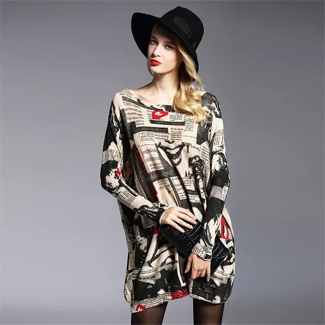 Женские свитера с принтом кота XIKOI, вязаные свитера с вырезом лодочкой в европейском и американском стиле, повседневный Длинный свободный свитер
