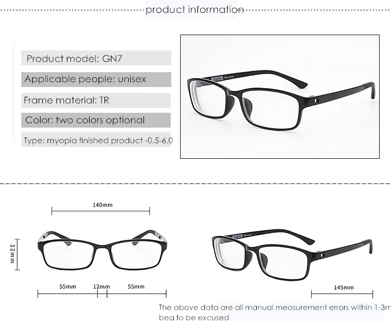 Информация о продукте Модель продукта: GN7 Для чего подходит этот товар: унисекс Материал рамы: защитный чехол для мобильного телефона Цвет: два цвета на выбор Тип: близорукость готовая продукция-0,5-6,0 Вышеуказанные данные являются ручными ошибками в измерениях в пределах 1-3 мм Прошу, чтобы быть освобождена