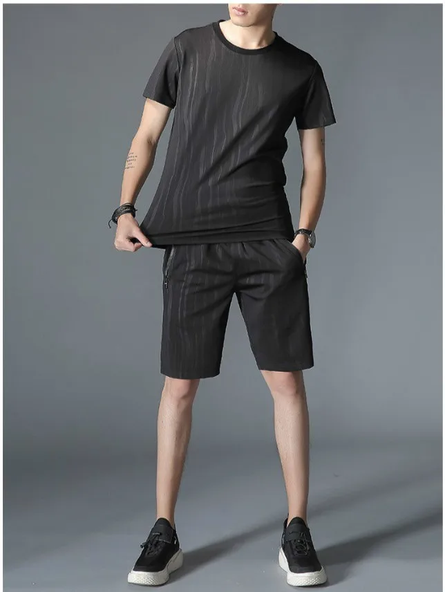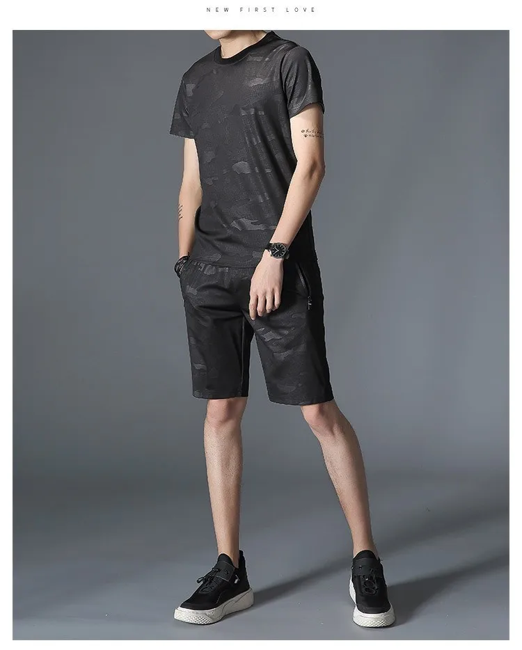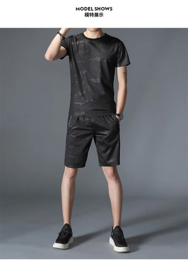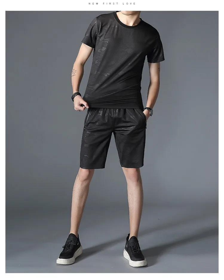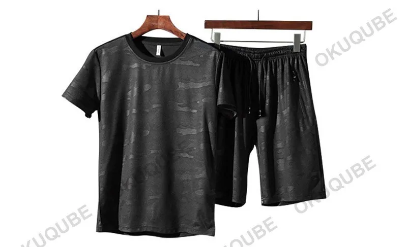 Men Running Set Two Pieces Tracksuit Man Printed Elastic Waistband Pockets Work Out Clothes Jogging Gym Training Sportswear Male