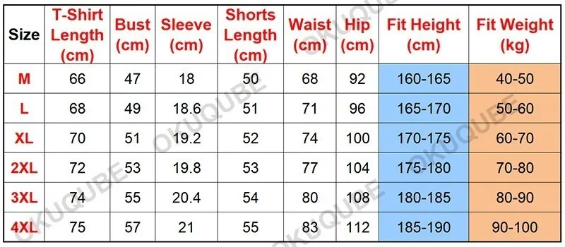 Please choose the sportswear size based on below Fit Height(cm) and Fit Weight(kg) columns