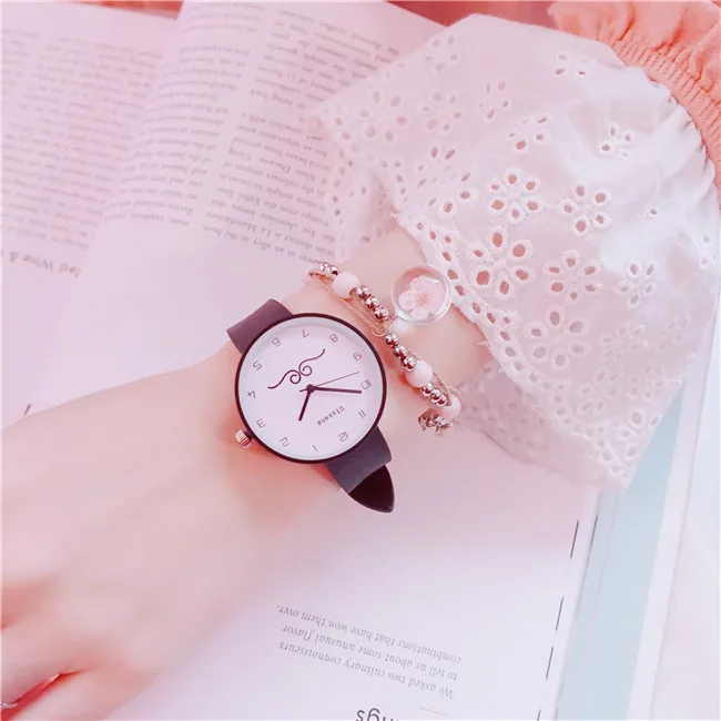 Модные маленькие часы для женщин и девочек аналоговые кварцевые Кожаный ремешок
