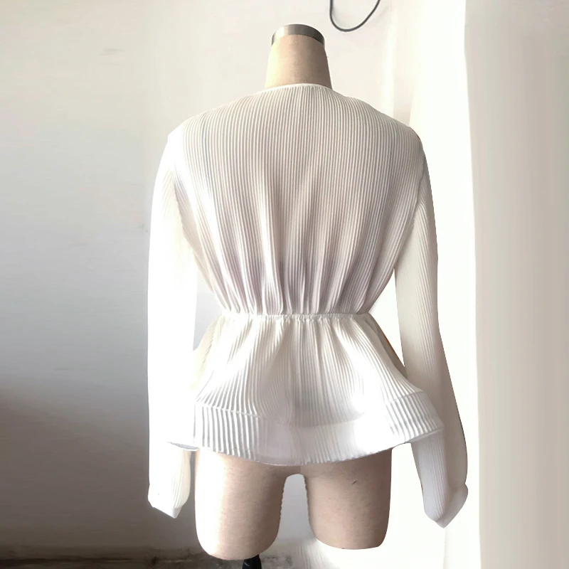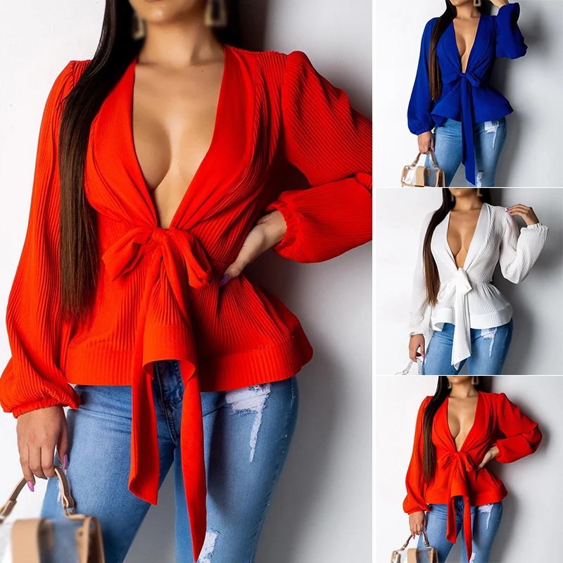 * Описание товара: летние полосатые женские деловые Топы с длинным рукавом и v-образным вырезом с большим подолом и бантом