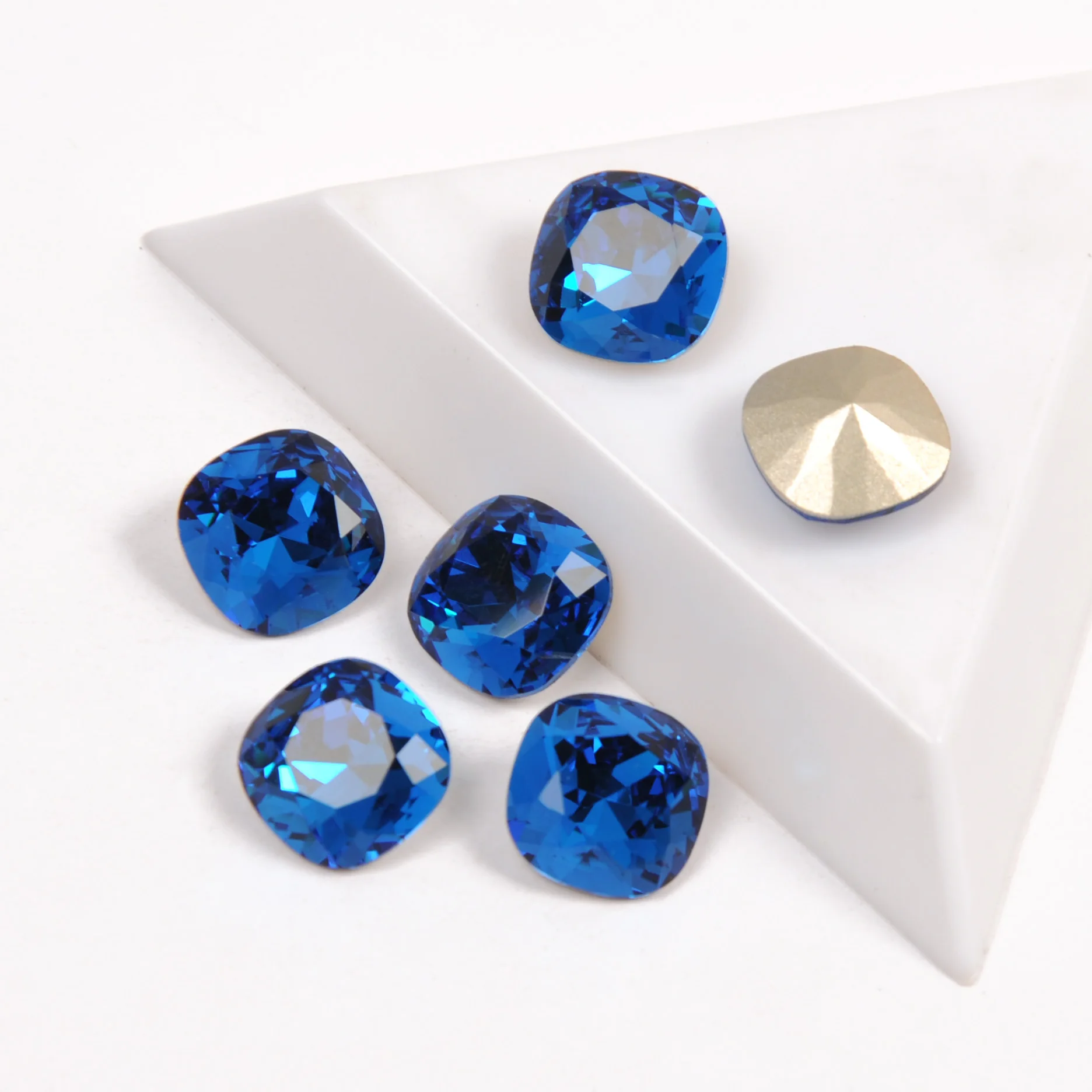 style: K9 crystal 4470 Cushion cut Shape Color: Capri Blue Claw : Silver or gold color Size :8mm,10mm,12mm,18mm Packing: 8mm-21pc,10mm-15pc,12mm-12pc,18mm-4pc Material: K9 Crystal Glass