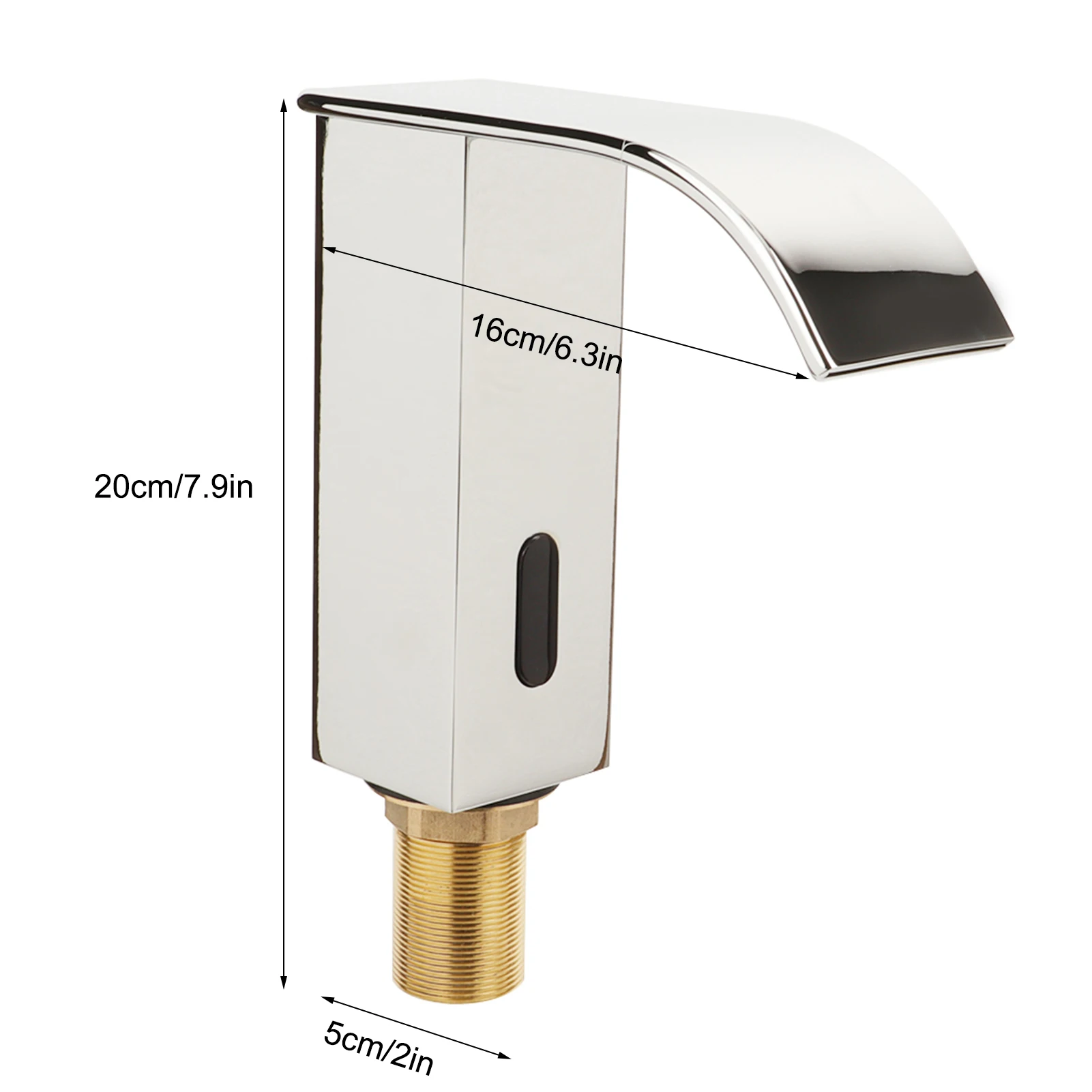 Не сенсорный датчик Автоматический кран холодной воды для ванной кухонной раковины G1/2 Особенности: Идеально подходит для ванной комнаты, кухни, дома, отелей и больниц и т. д. Кран с сенсорным управлением,Не нужно касаться, гигиенические и энергосберегающие. Поток водопада, без разделения. DC и AC выбираются, экологически чистые и энергосберегающие. Изготовлен из превосходного медного материала, устойчивый к эрозии и долговечный для длительного использования. Цвет: серебристый Тип: одностыковый Тип Подходит для: G1/2" Размер: прибл. 20x16x5 см/7,9x6,3x2 дюйма Посылка: 1 * кран 1 * трубка 1 * чехол для аккумулятора (батарея в комплект не входит) 2 * винты 1 * Руководство пользователя