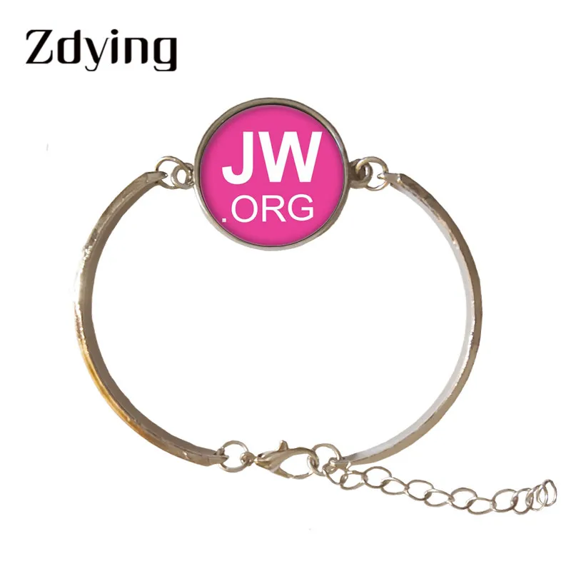 ZDYING Fashion JW.ORG Bracelets Glass Cabochon Charm Alloy Chain Bangles For Woman Men Party Jewelry Gift J009