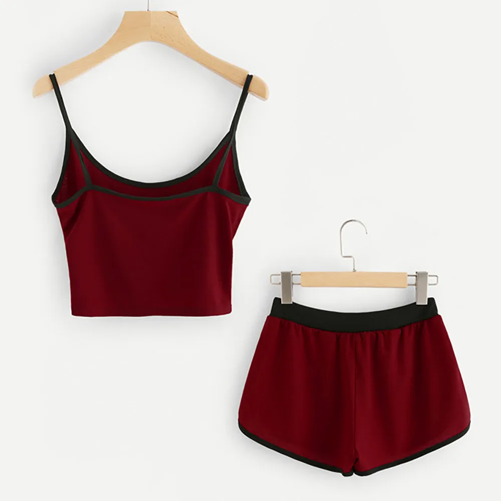 Женский укороченный топ без рукавов в стиле пэчворк, блузка + комплект шорт со шнуровкой, спортивный костюм