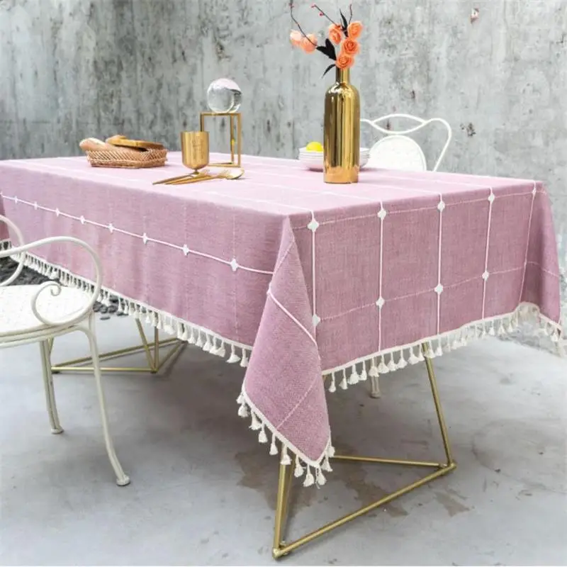 Клетчатая вышитая простая скатерть однотонная хлопковая и льняная маленькая скатерть для свежести тканей прямоугольный журнальный столик с кисточками 3US $18,51 /