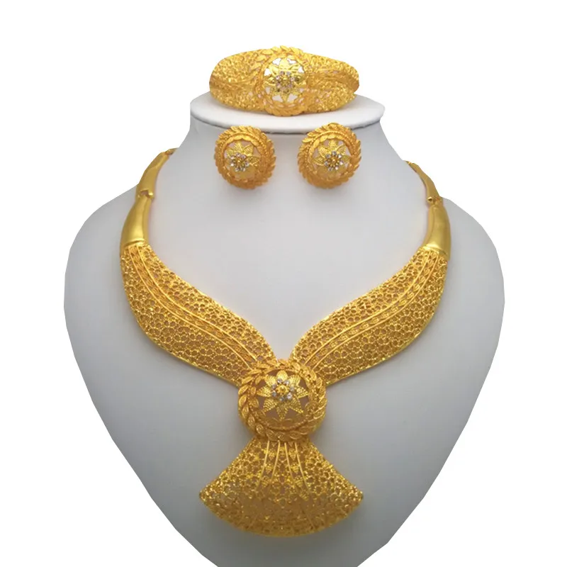 Модный Ювелирный Набор, Африканский нигерийский Дубай, золотой цвет, африканские украшения из бисера, Свадебный комплект ювелирных изделий, африканские свадебные подарки