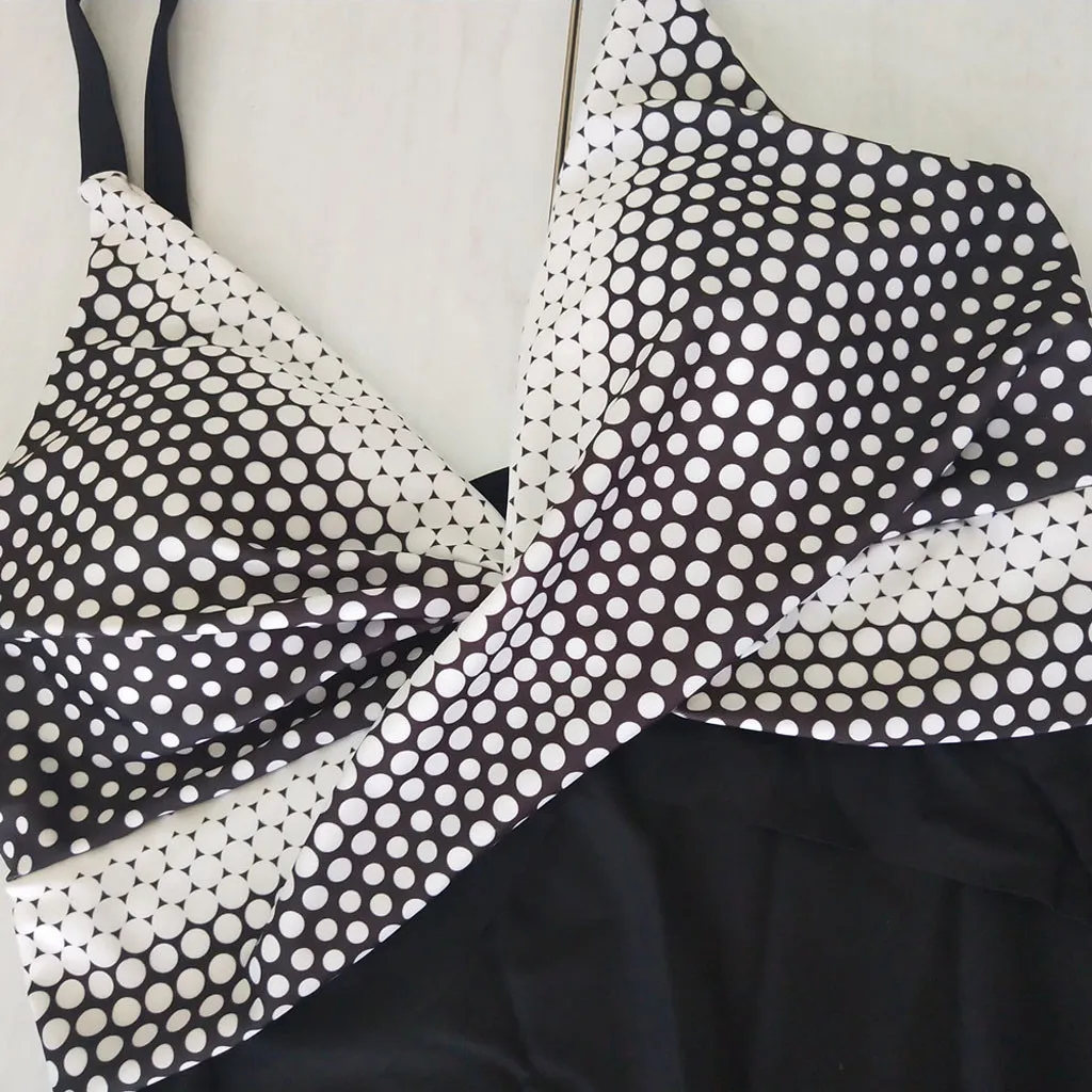 Women Plus Size Wave Point Printing Gauze Splicing Bikini One Piece Swimsuit