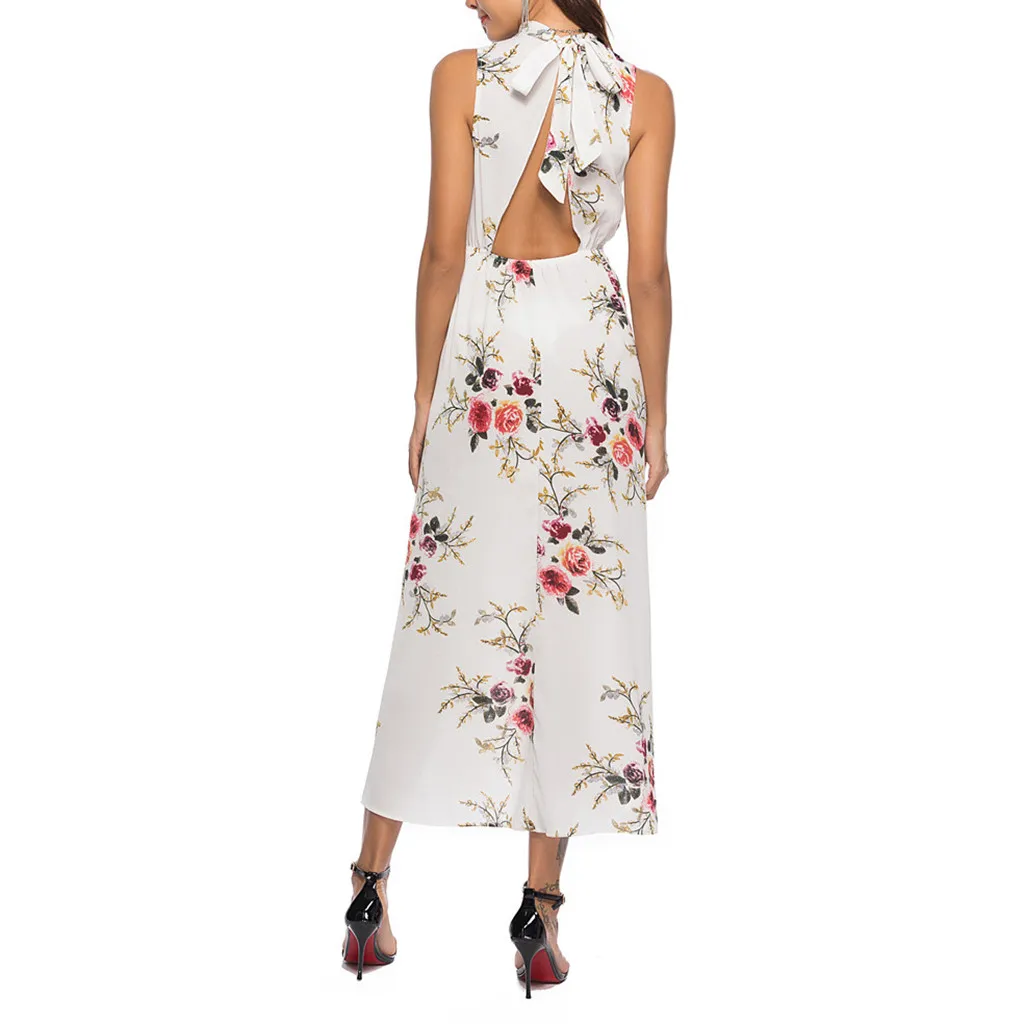 Женское летнее сексуальное модное платье с лямкой на шее и принтом на шнуровке Без Рукавов