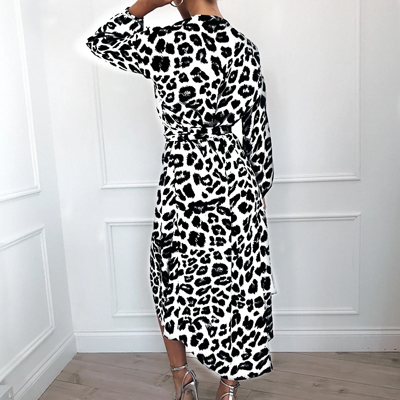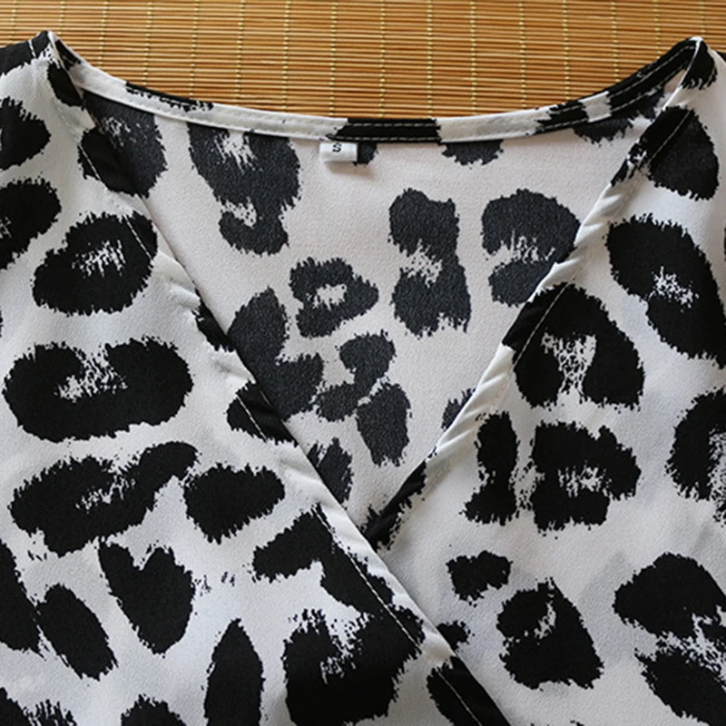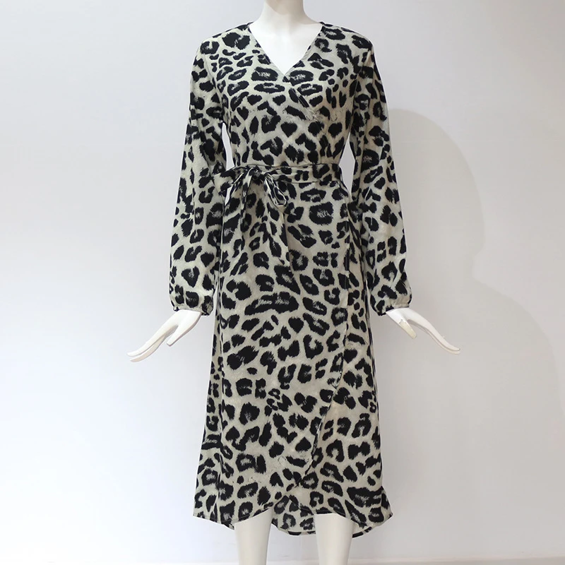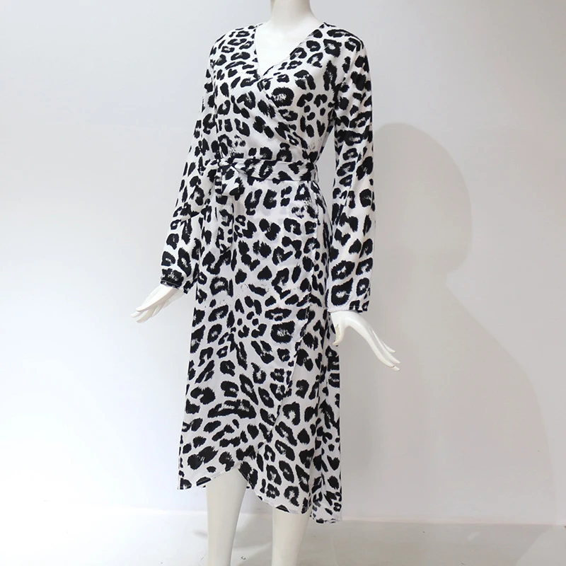 * Описание товара: сексуальный, Леопардовый, глубокий v-образный вырез, длинный рукав, высокая талия, завязывается, а-силуэт