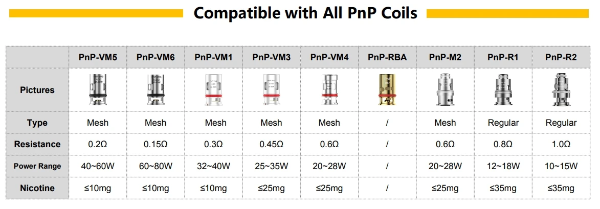Совместимые катушки: все PnP катушки