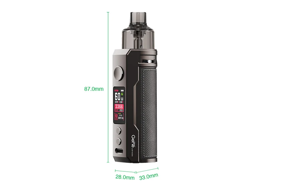 ВНабор VOOPOO DRAG S 60W VW PodПриближается! VOOPOO DRAG S питается от внутреннего аккумулятора емкостью 2500 мАч. Встроенный Чипсет Gene.TT-это новейшая технология от VOOPOO, которая приносит потрясающий опыт vaping vapers. VOOPOO DRAG Размеры S комплект имеет 4,5 мл емкость для сока со сменным катушки. Бак VOOPOO DRAG S совместим со всеми катушками PnP (PnP RBA исключен). VOOPOO DRAG S использует функцию регулируемой мощности от 5 Вт до 60 Вт. Система зарядки типа C в комплекте VOOPOO DRAG S обеспечивает быструю и безопасную зарядку.