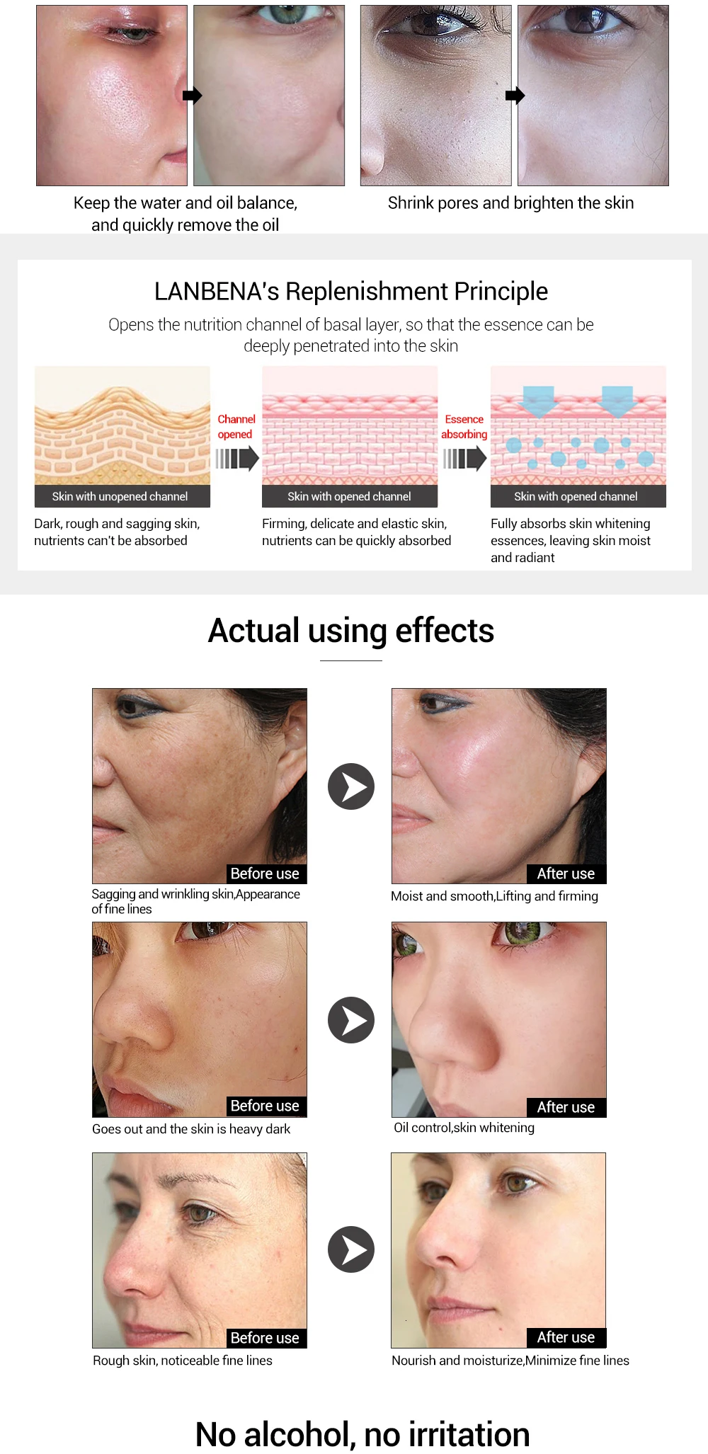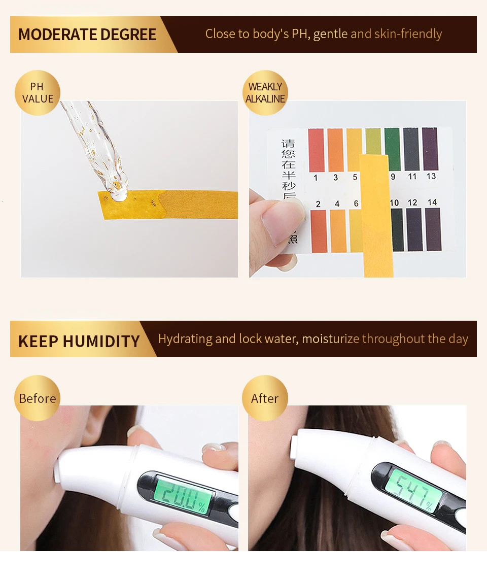 Эффекты: уменьшает тонкие линии, питает и подтягивает кожу, делая ее упругой, отбеливает и увлажняет кожу, предотвращает появление морщин, улучшает свободу кожи, подтягивает и увлажняет кожу, сохраняет его твердым и гидратированным и замедляет старение.