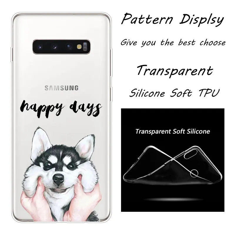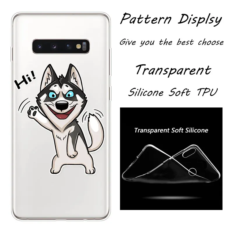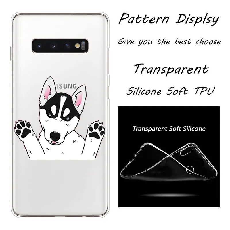 BinFulХаски щенковЛидер продаж; МодныеПрозрачный чехол для телефона из мягкого силикона ТПУ с рисункомЧехол для Samsung Galaxy S7 S7 край S8 S8 плюс S9 S9 плюс S10 S10E S10 плюс A5 2017 A7 2017 A6 2018 A7 2018 A8 2018 A9 2018 A6 плюс A8 плюсКрышкаЧехол.