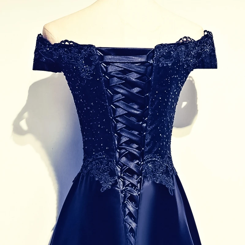 Женское вечернее платье с вырезом лодочкой и кружевной аппликацией сзади, лето 2019