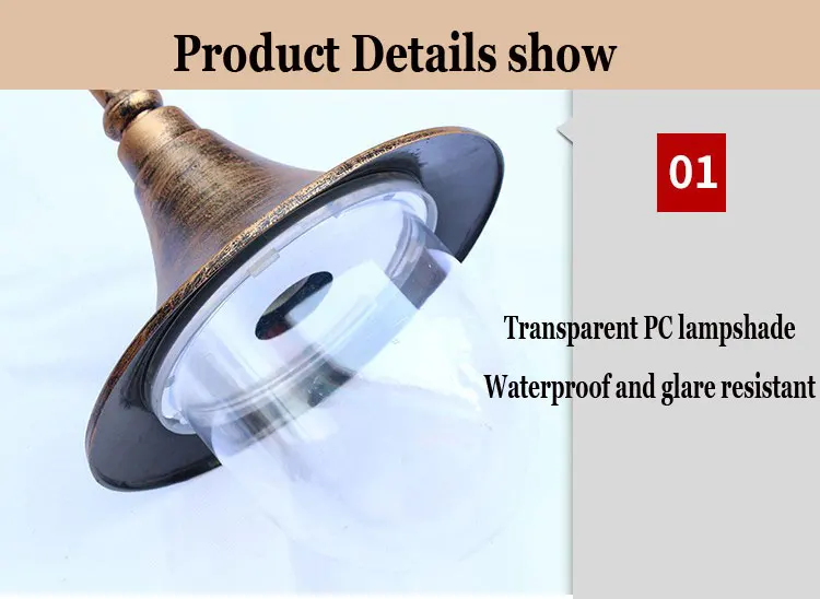 1. Напряжение: AC85-265V 2, светильник источник: E27 (без лампочки) 3. Материал: алюминий, 4. Цвет корпуса: черный, бронзовый 5, Размер: H2.2M Применение: Ворота, сад, двор, коридор, вилла, жилые помещения, балкон, газон, проход, спальня, балкон и т. Д.